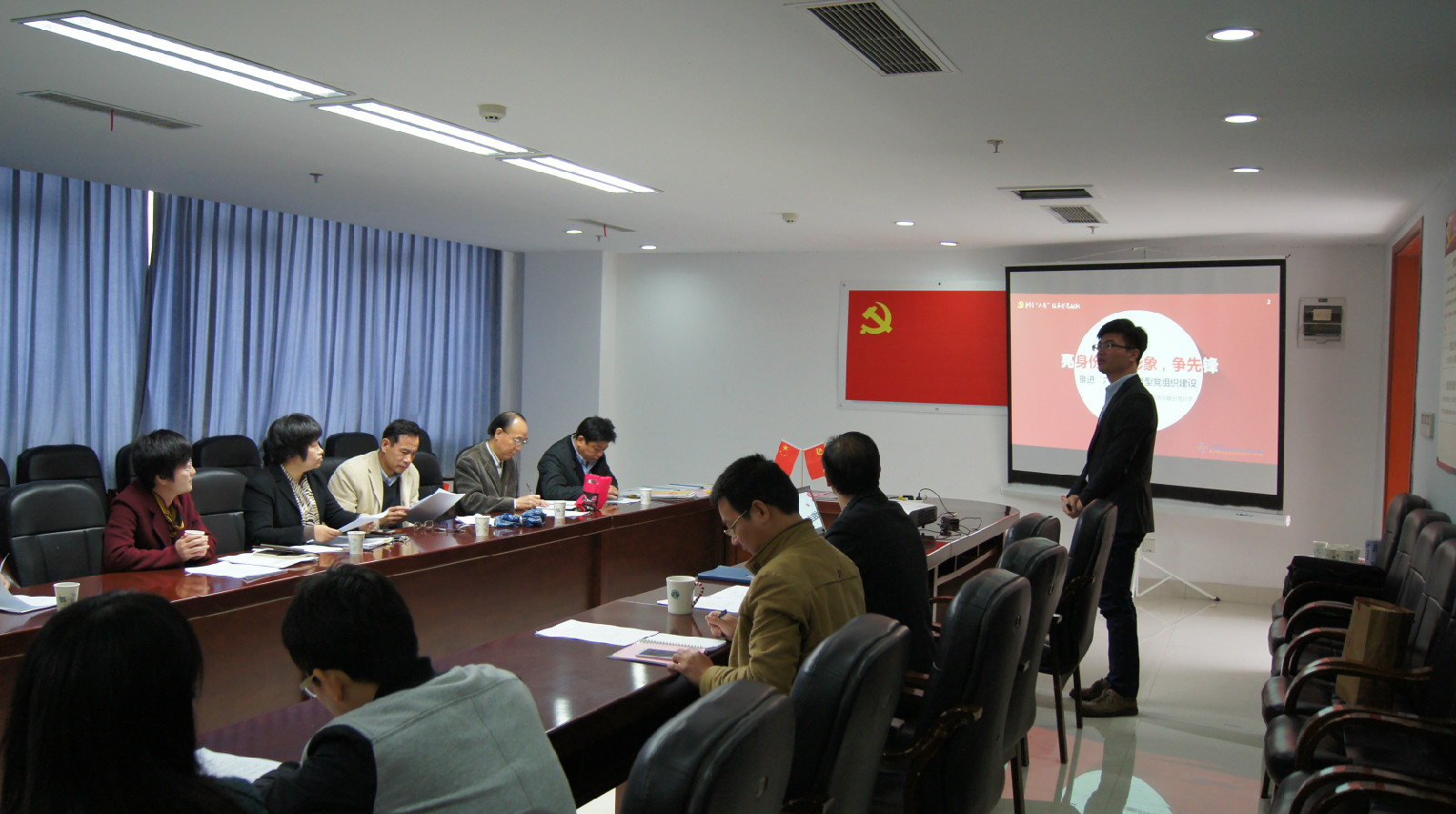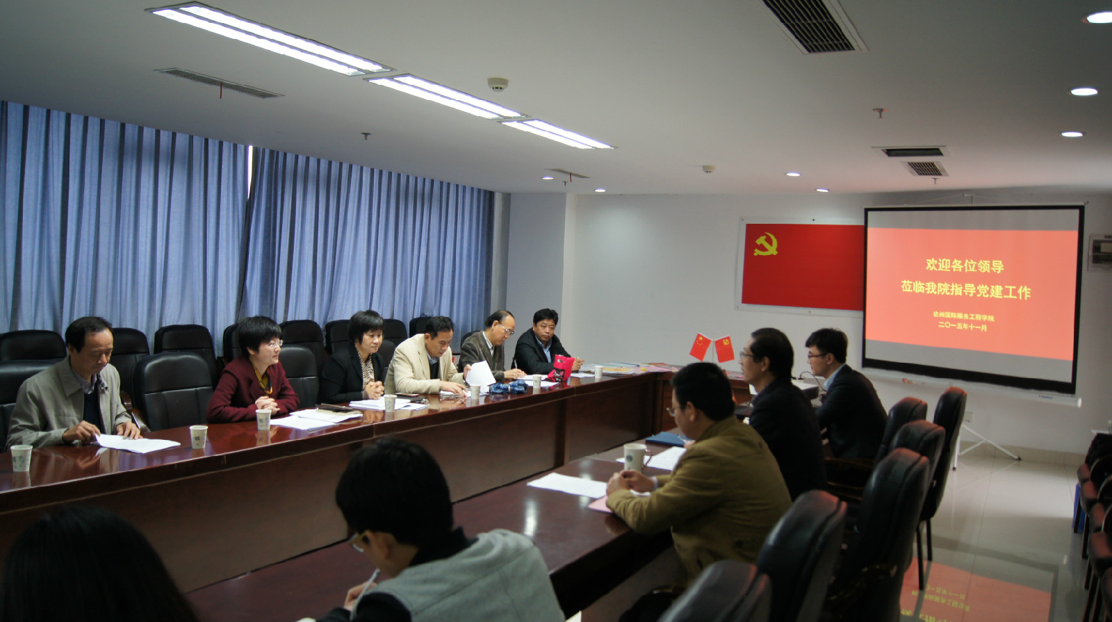 2015年11月19日,组织部一行12人来到文轩探花 党员之家,听取学院计算机系金融服务系联合党总支申报“六有”服务型党组织建设示范点创建的答辩。学院党委书记陈永强、党委副书记杨学勇和组织员赵亚英出席答辩会,系总支书记张敬礼进行答辩。