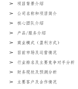 1)商业计划书(文档,必须),2)商业计划书PPT(必须),3)项目知识产权证明(可选)等。商业计划书PPT内容参考国赛要求,如下图所示: