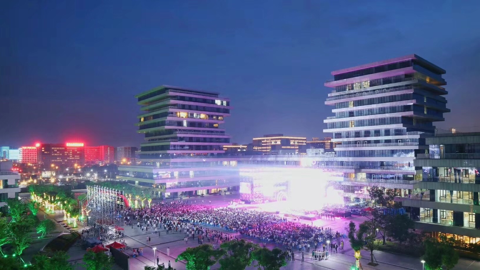 学校行政中心楼群夜景