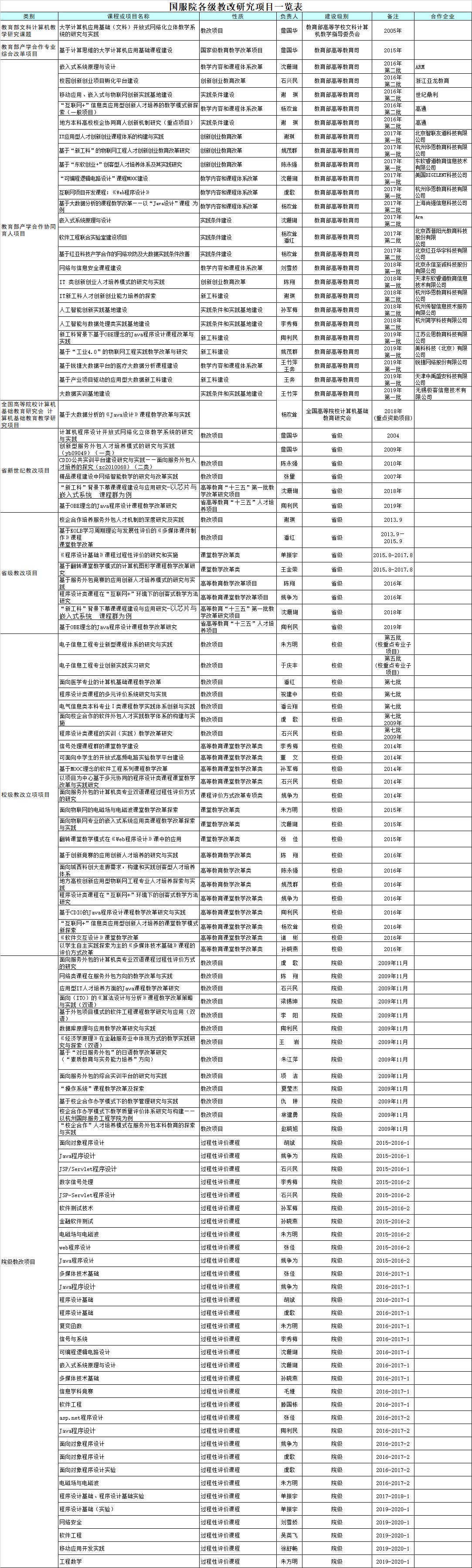 各级教改研究项目一览