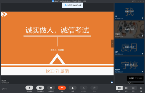 期末将近,为进一步加强学院学风、考风建设,营造良好的考试氛围,贯彻学校考试纪律要求,保证考试的严肃性和公正性,杭州国际服务工程学院各班于近期陆续召开了诚信考试教育主题班会。
