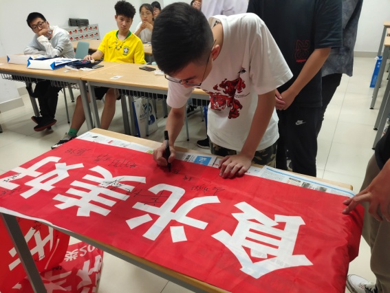“在光盘行动班会的最后,我们全班同学一起,在印有班会主题的横幅上签名,表明自己光盘行动的意愿,为此宣誓:在日后的就餐过程中,做到不浪费,勤俭节约!”