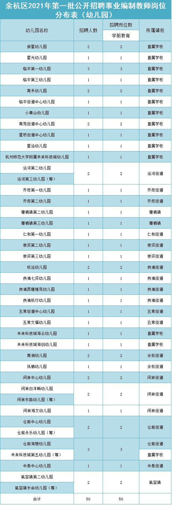 转 载 | 余杭区2021年第一批公开招聘中小学、幼儿园事业编制教师公告