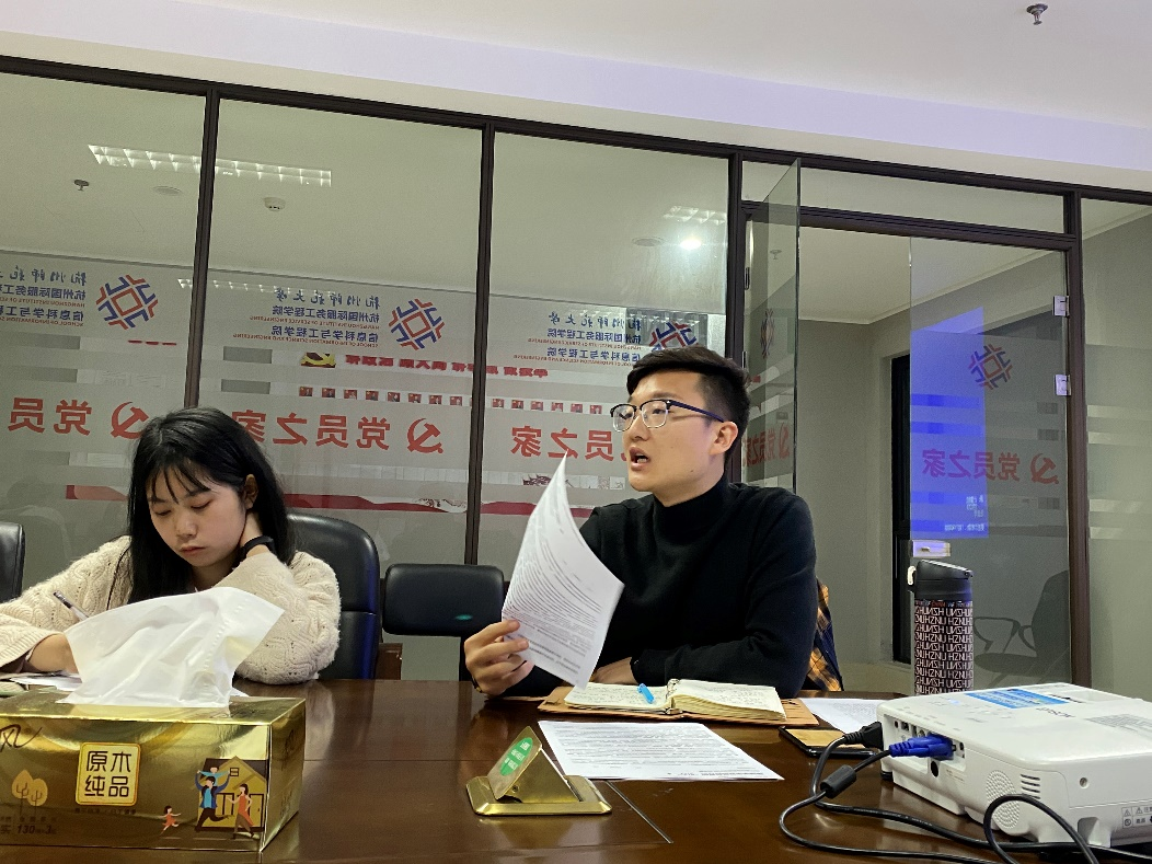 在会议的最后,党支部书记为整个党员活动日做了一个总结。我们要围绕学习贯彻习近平总书记在党的十九届五中全会上的重要讲话精神,深刻认识我国“十三五”时期取得的突出成就,准确把握“十四五”时期重要战略机遇期。从身边的小事做起,以研究生的身份为我们的祖国添荣加彩,担负起时代赋予我们的光荣使命。