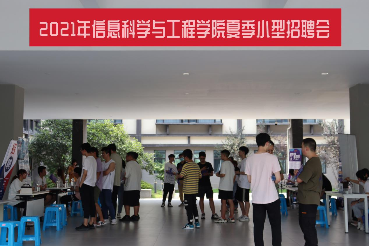 6月9日下午,信息科学与工程学院夏季小型招聘会在勤园10号楼大厅顺利举行,共五家用人单位代表人员来到现场,百余名学生积极参与,同学们在现场积极投递简历,主动了解用人单位的情况,招聘人员也热情地与同学进行交流沟通,向优秀的同学伸出橄榄枝。