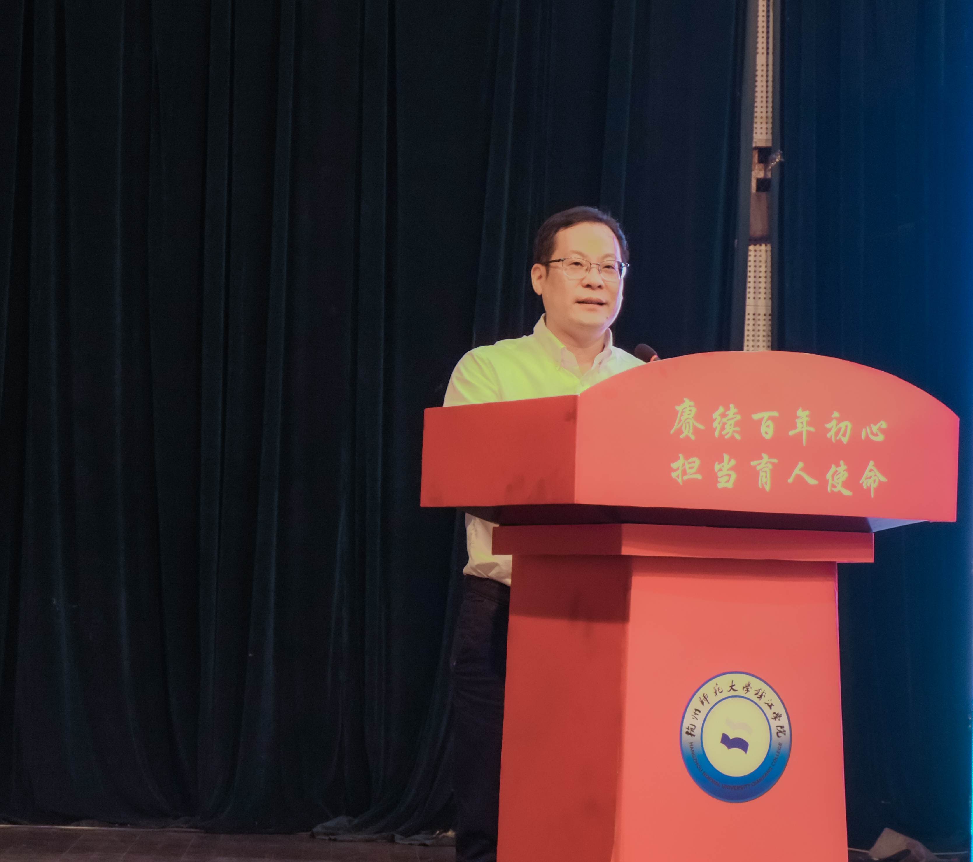 学院党委书记周春儿寄语全体新生,周书记对全体2021级新生表达了热情的欢迎,并提出了四点建议与期望,一是立大志,志存高远方能激发奋进潜力,不负时代重托;二是明大德,修身立德,不疏漏于小节,不游移于大德,既能做到立意高远,又能做到立意平实;三是成大才,立足于百年未有之大变局,更应当增强知识更新的紧迫感,既要做到扎实打牢基础知识,又要做到文理渗透、艺体兼备;四是要担大任,保持契而不舍,上下求索的毅力,以成为可堪大用、能担重任的栋梁之才为人生目标。