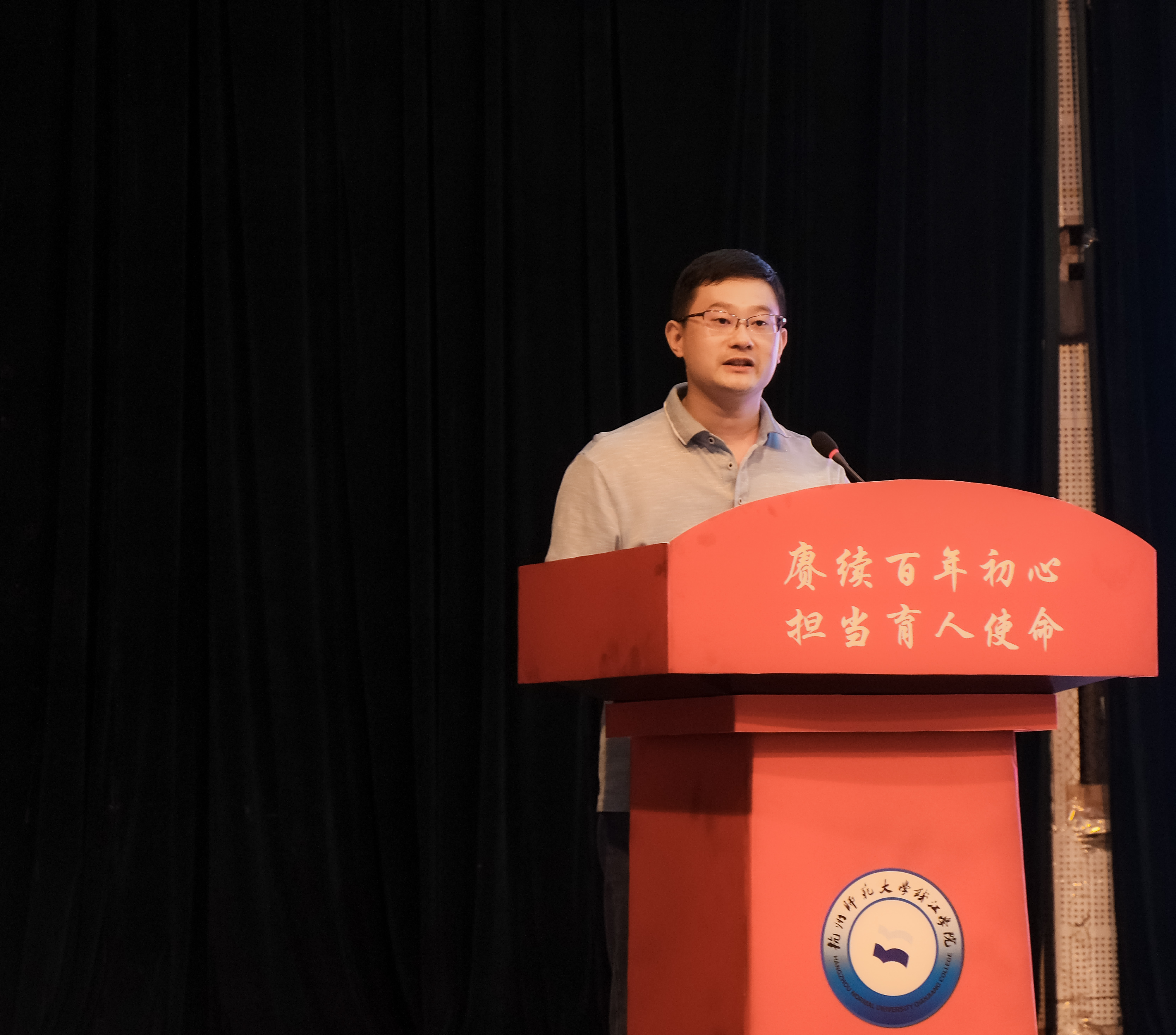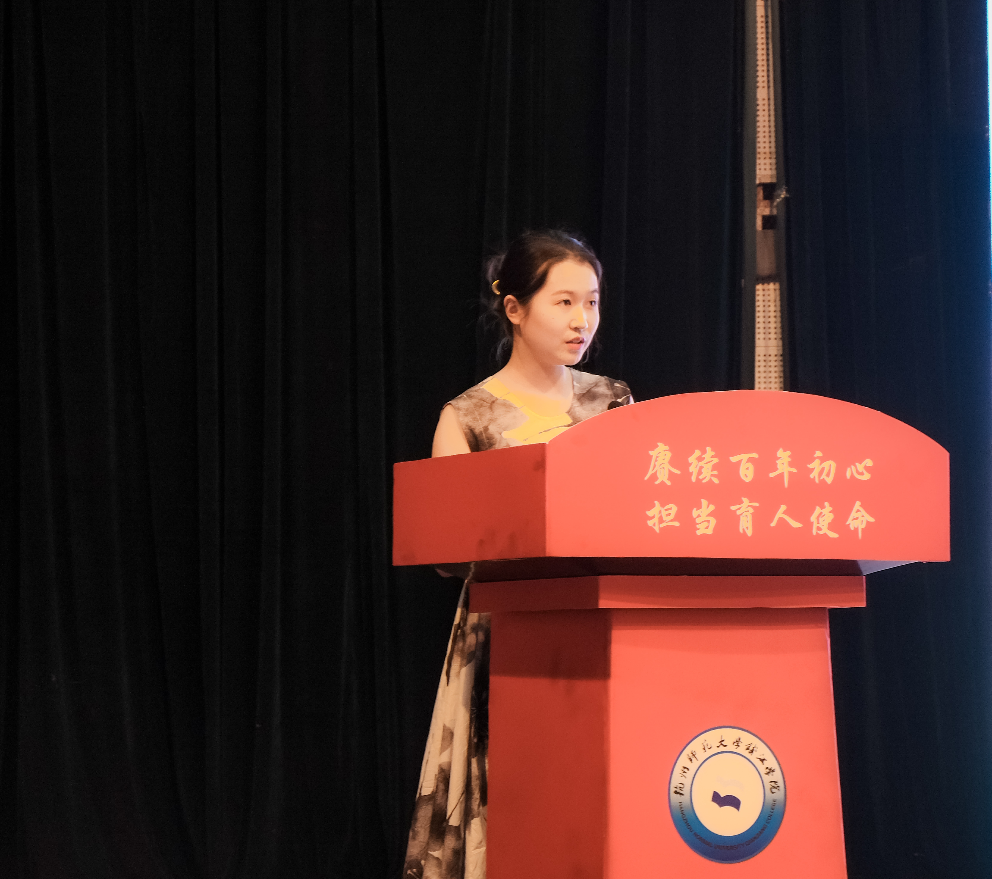 计算机类217班班主任冯阳老师作为教师代表发言,冯老师希望全体新生能够做到不忘初心,时刻牢记使命,在“勤慎诚恕,博雅精进”的校训与“包容开放、学与俱进、追求卓越”的师大精神的引领与浸润下成为一名优秀的师大人、信息人。