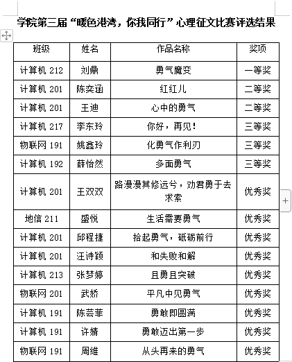 学院第三届“暖色港湾,你我同行”心理征文比赛评选结果