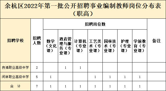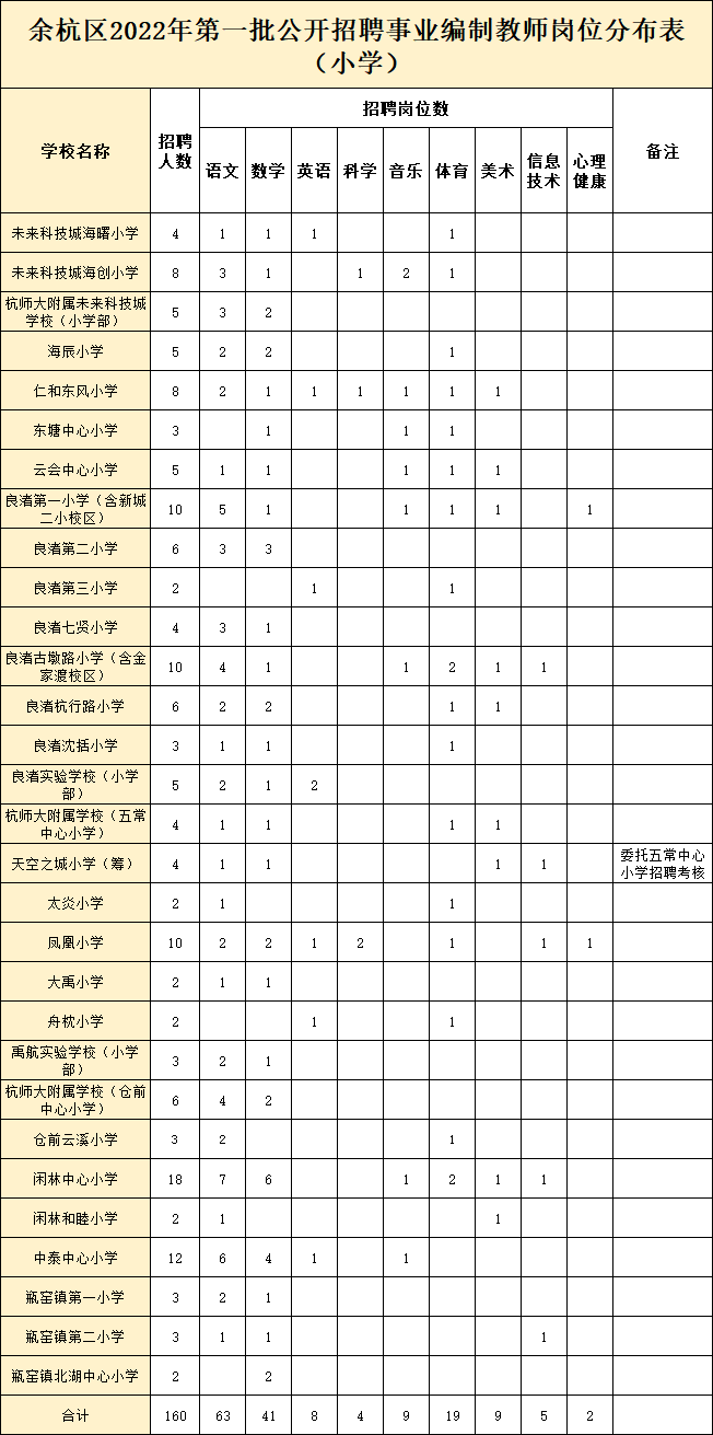 ▲附件1:余杭区2022年第一批公开招聘事业编制教师岗位分布表