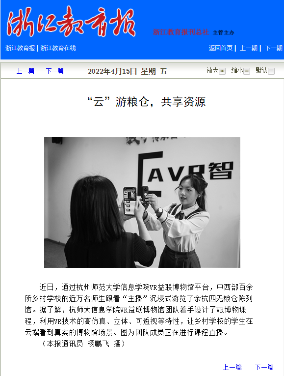 【媒体关注】浙江教育报:“云”游粮仓,共享资源