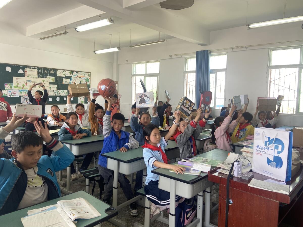 在金沙镇中心校的教室里,刁湾湾在收到信件和礼物后,开了一个“微心愿·开盲盒”的主题班会。为了这次班会,她精心准备了一周的PPT,她从杭州亚运会吉祥物说到亚运会的各个场馆,将杭州亚运会在孩子们面前进行了一番全景式展示。随后,她组织孩子们进行了一场有关杭州亚运会知识的竞答赛和杭州亚运会吉祥物的绘画比赛。“过程中,孩子们对亚运会和杭州的了解又深了一步”,刁湾湾说道。