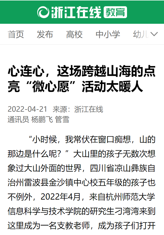 【媒体关注】浙江在线教育频道:心连心,这场跨越山海的点亮“微心愿”活动太暖人