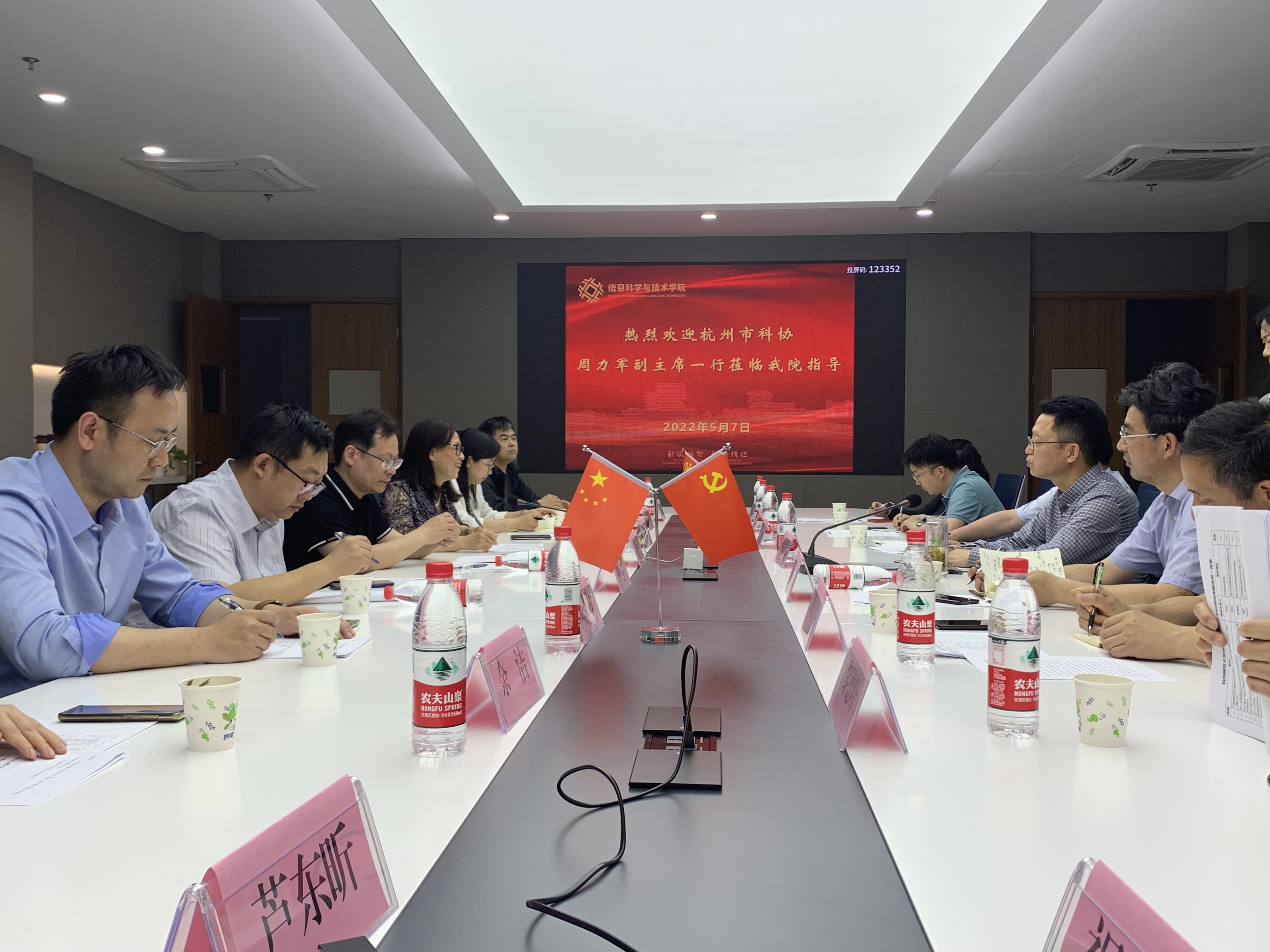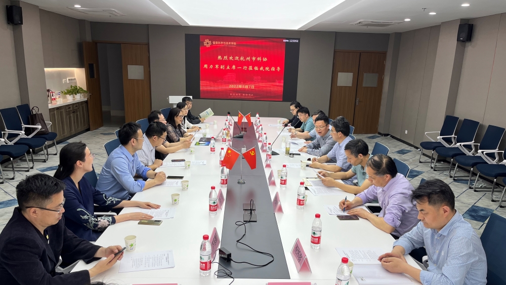 5月7日上午,杭州市科协党组成员、副主席周力军带领市科协科普部、中国低碳科技馆馆长陈仲达、余杭区科协主席黄庆芳及相关人员一行8人来文轩探花 走访调研。文轩探花 副校长胡华、科研处处长张杭君及学院党政班子成员陪同。