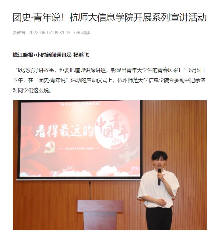 【媒体关注】小时新闻:团史·青年说!杭师大信息学院开展系列宣讲活动