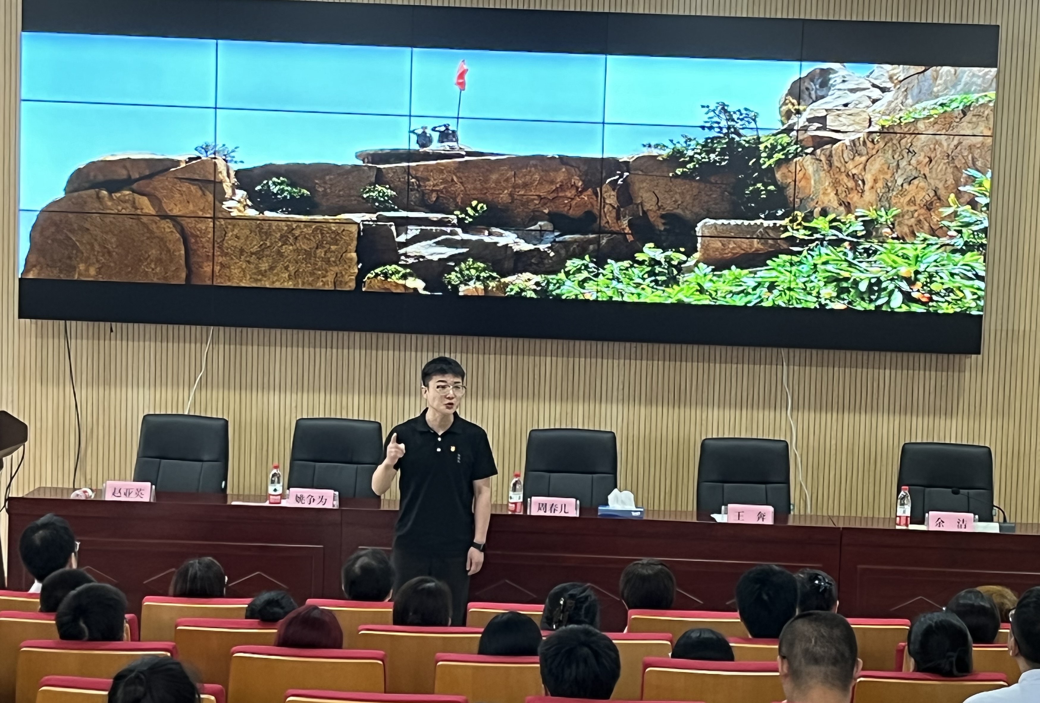 在2022年赛杭州市微型党课大赛暨“共同富裕·青年说”大赛特等奖作品展演环节中,计算机与金融服务系研究生第一党支部书记王熙文以饱满的情绪、慷慨的激情为在座党员讲述了《守岛人》这部电影中王继才不辱使命、不忘初心,驻守祖国海疆开山岛32年的动人故事,同时讲述了黄大年、张桂梅等在教育战线奋斗的那些“很傻却很伟大”的党员们。