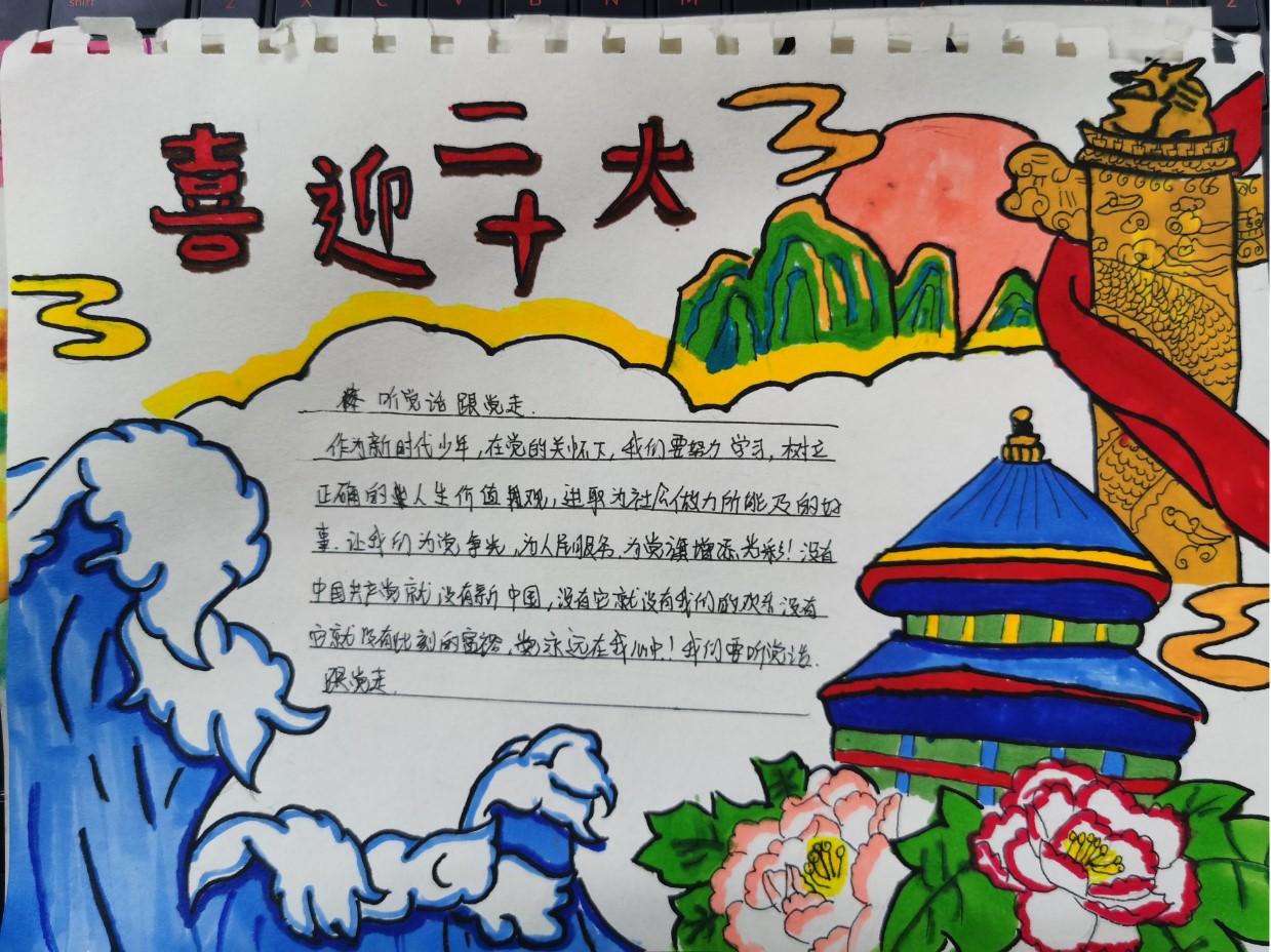 宣讲员带领孩子们从“党代会的介绍”、“党代会上讲了什么”、“我们要怎么做”等三个方面一步步深入,解读省第十五届党代会精神,于潜移默化间培育孩子们的爱党爱国意识。随后,队员们还带领孩子们进行了“喜迎二十大”的文艺实践活动,进行手抄报的制作以及《信仰的味道》歌曲的合唱。在当天晚些时候,队员们在当地村干的陪同下,带领孩子们寻访当地的杨敬燮烈士陵墓园,在革命烈士纪念碑前,“00”后大学生和“10”后小学生一起缅怀革命先烈,将红色教学学习融入生活,守好红色根脉、助力乡村振兴。