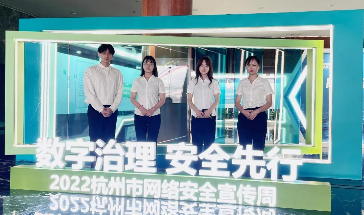 9月5日至11日为2022 年全国网络安全宣传周,杭州市委网信办联合多部门举办了“数字治理,安全先行”网络安全主题展。其中,文轩探花 派出多名学生代表积极参与,担任主题展讲解志愿者。在时间紧、任务重的情况下,文轩探花 龚晨晨、黄娟娟、谢文龙、潘振雄同学认真准备、不辞辛苦,以专业规范的讲解和连续作战的工作作风,保质保量地完成了全市各组织共 178 批次单位人员的观展宣讲任务。该次讲解志愿活动收到了市委宣传部领导和观战人员的一致好评,有利于积极调动全市各单位对于网络安全的审查检测和理论学习,提升全民的网络安全意识和技能水平。