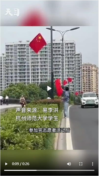 【媒体关注】天目新闻:你飞奔捡国旗的样子很美!杭州大学生在车流中捡起掉落的国旗 时间:2022-09-29 21:22:23 文章来源 :院办 浏览量:58 9月28日中午,文轩探花 学生易李洪和同学谭雅丹在梦想小镇参加完志愿者活动回校的路上,易李洪和同学一边提醒过往司机,一边飞奔去捡起来国旗。当问到易李洪为什么这么做时,他说,就想着不能让我们的国旗受到损伤。最后小易和同学把捡到的国旗拿回学校交给了老师。(通讯员 杨鹏飞 谭雅丹)原文链接://tm.zjol.com.cn/video.html?id=681345&duration=27.0&isVertical=1&fsize=7380632&width=720&height=1280&video_h5_mode=1