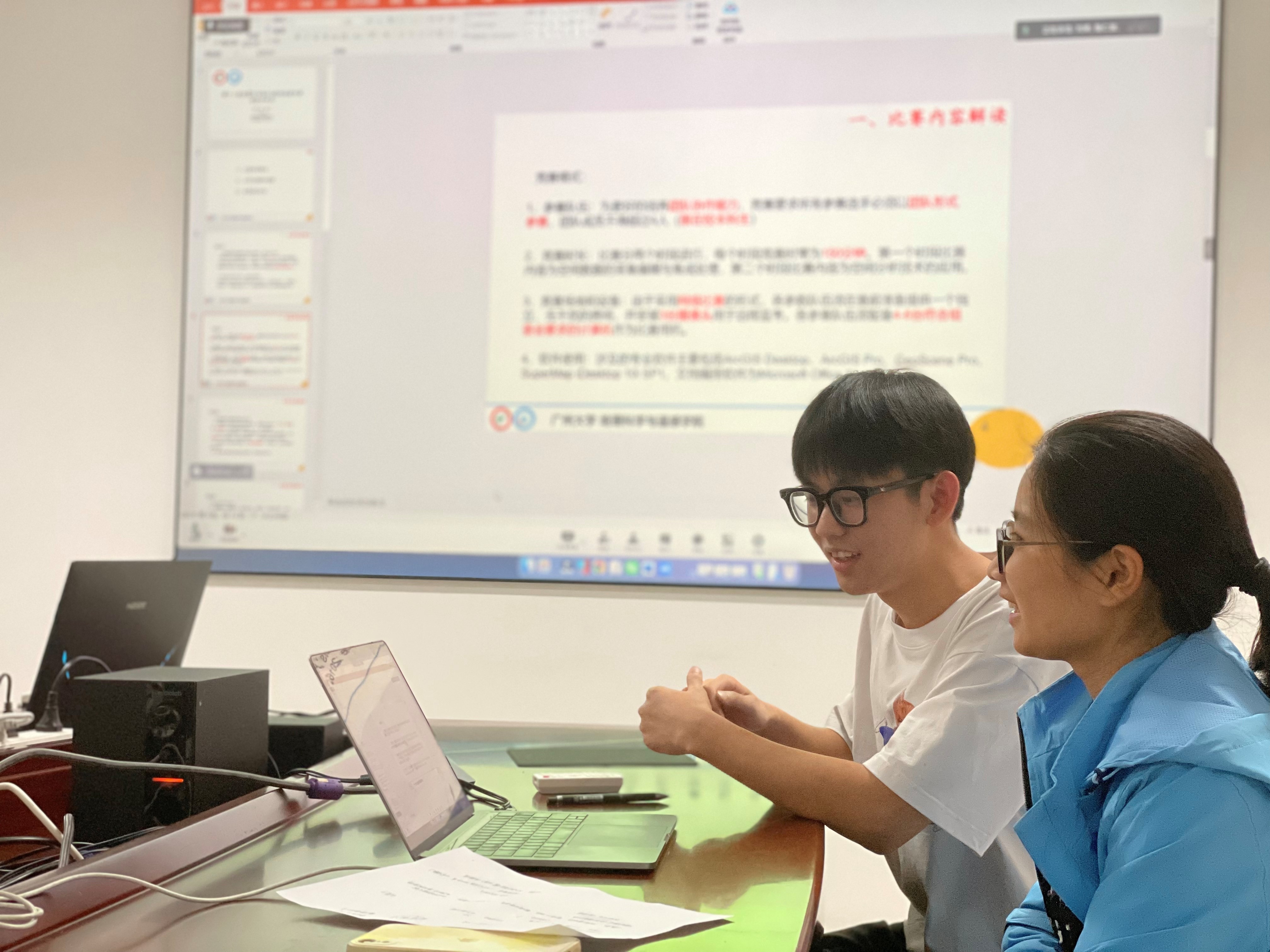 互动环节中,与会同学积极发言,提出了个人对部分规则的不解与在练习真题道路中的阻碍,骆老师耐心答疑,助力同学们在GIS应用技能大赛的赛道中更进一步。(文/陈轩楠 图/刘婷 陈轩楠)
