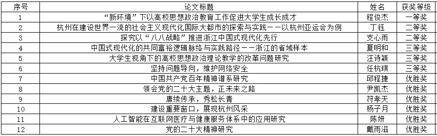 为深入学习习近平新时代中国特色社会主义思想和党的二十大精神,贯彻落实习近平总书记关于教育的重要论述精神,特别是关于大学生思想政治理论课的相关要求,坚持不懈用习近平新时代中国特色社会主义思想铸魂育人,不断提升思想政治理论课育人实效,学院团委组织开展学院第一届思政理论课论文竞赛活动。近日,学院第一届思政理论课论文竞赛顺利落下帷幕。经评委评审,现公布获奖名单如下: