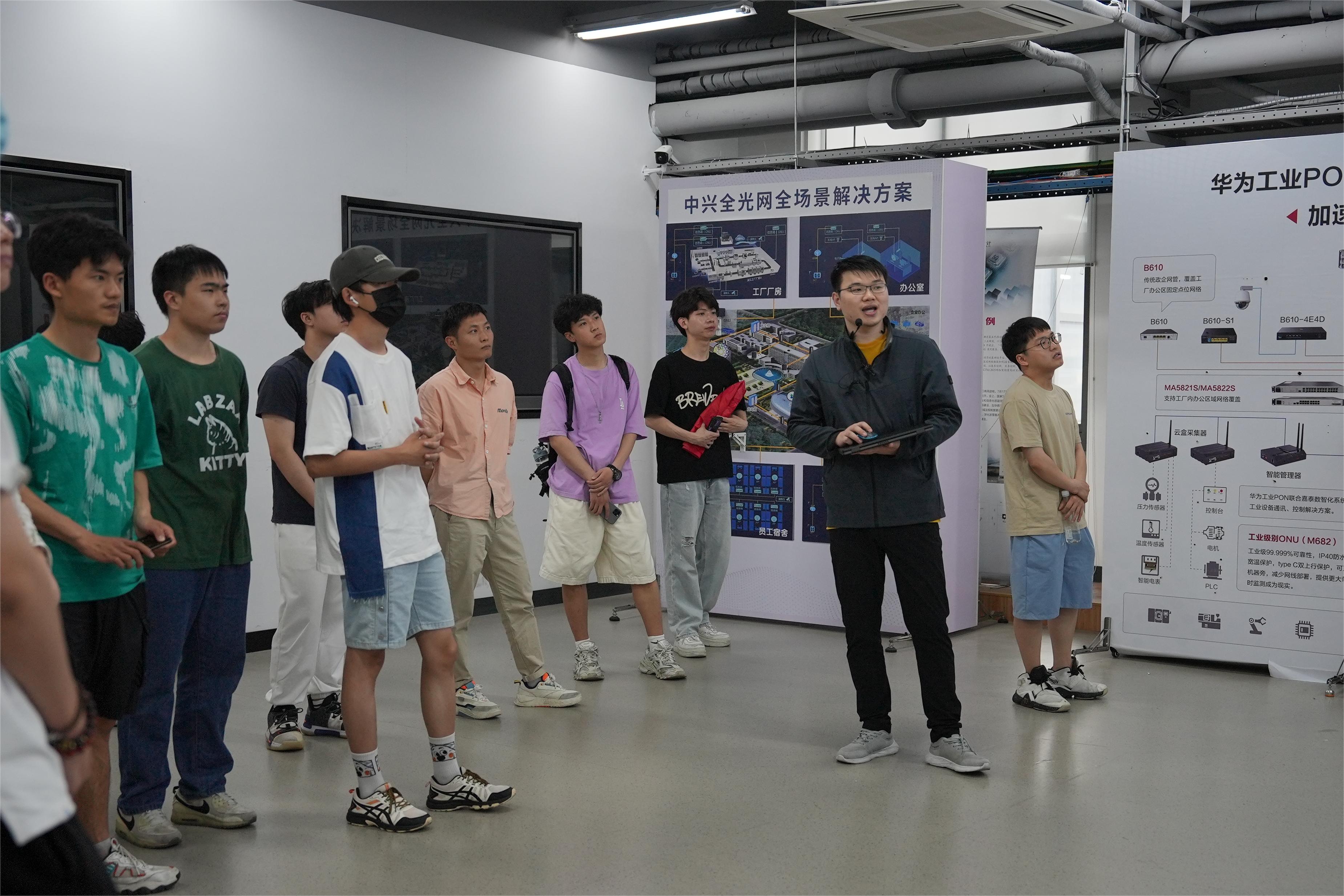 华信员工带领同学们参观展厅,通过照片、3D短片等方式,为同学们介绍了公司自创立以来的发展历程、创业方向和市场前景。随后,华信员工还为大家介绍和展示了现有的高端仪器和设备,带领大家参观了机房、实验室等孕育新技术和新产品的区域。
