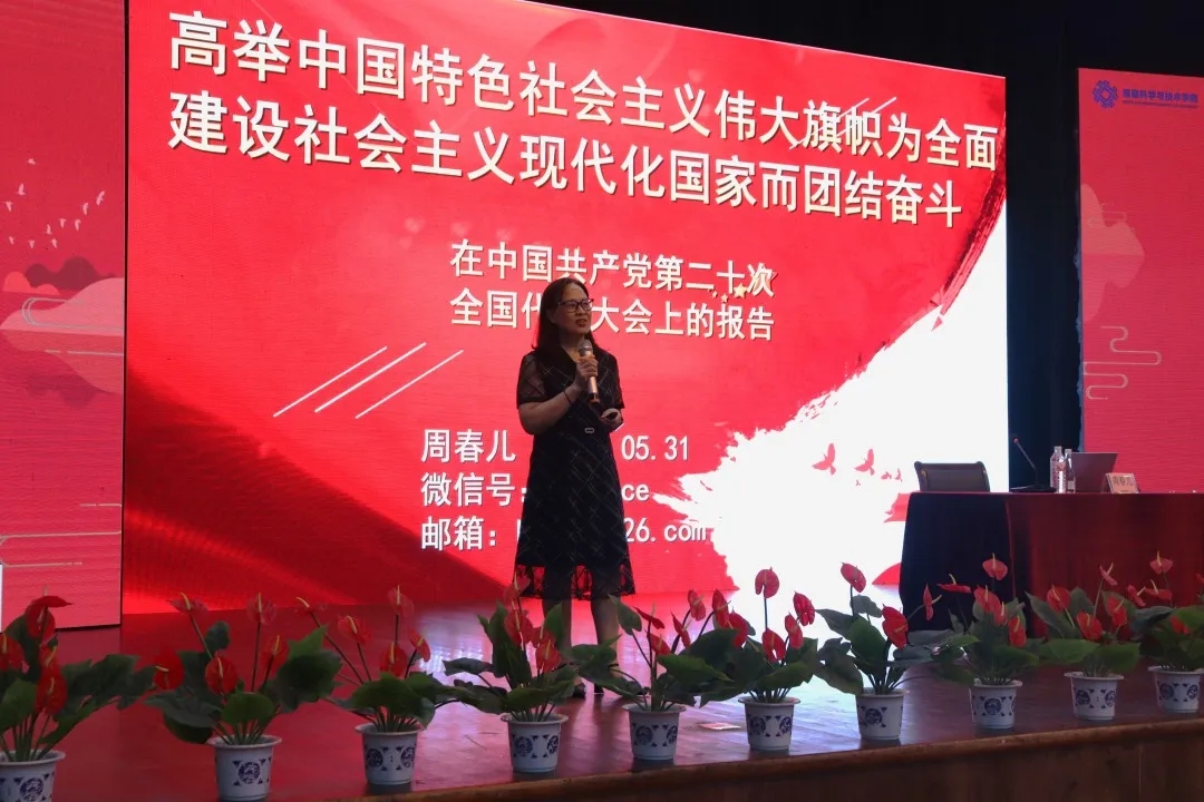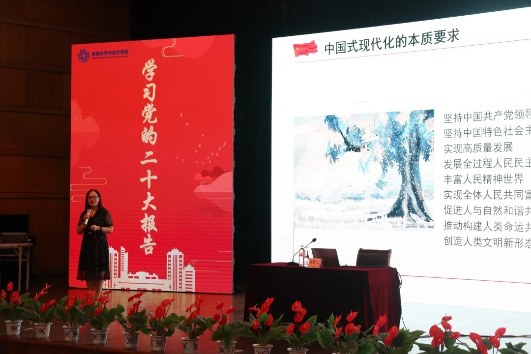 为全面贯彻落实习近平新时代中国特色社会主义思想主题教育,巩固学生对党的二十大报告的理解,近日,学习党的二十大报告主题教育专题讲座在下沙校区钧儒厅顺利举行,本次讲座由院党委书记周春儿主讲,学院全体大一学生参加本次讲座。