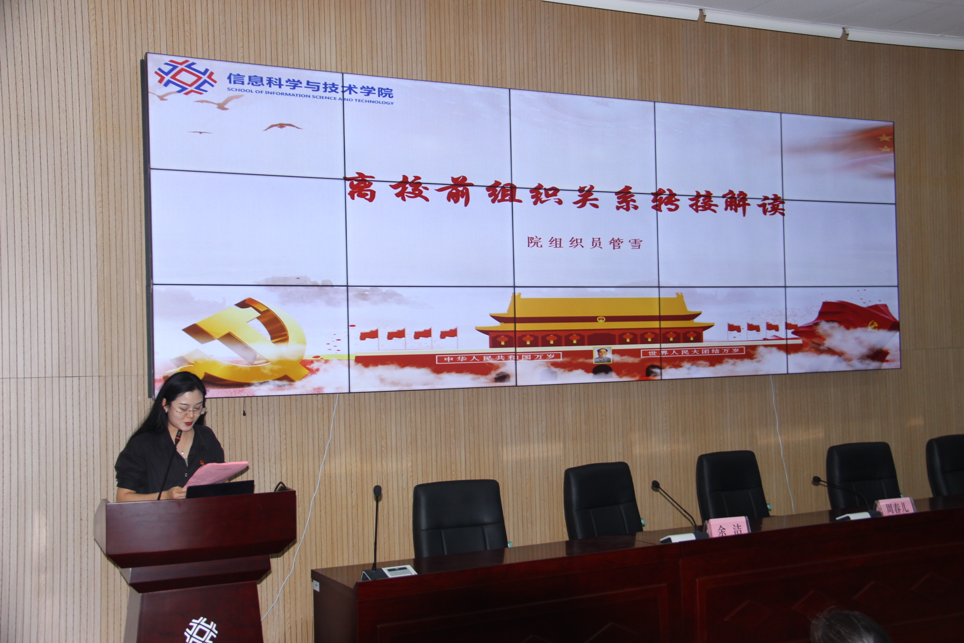 最后一节党课的第三项议程是由院组织员管雪向各位毕业生党员解读了离校前如何进行组织关系转接,为即将离开校园、转移党组织关系的各位毕业生清晰地说明了党组织转接的各项政策。