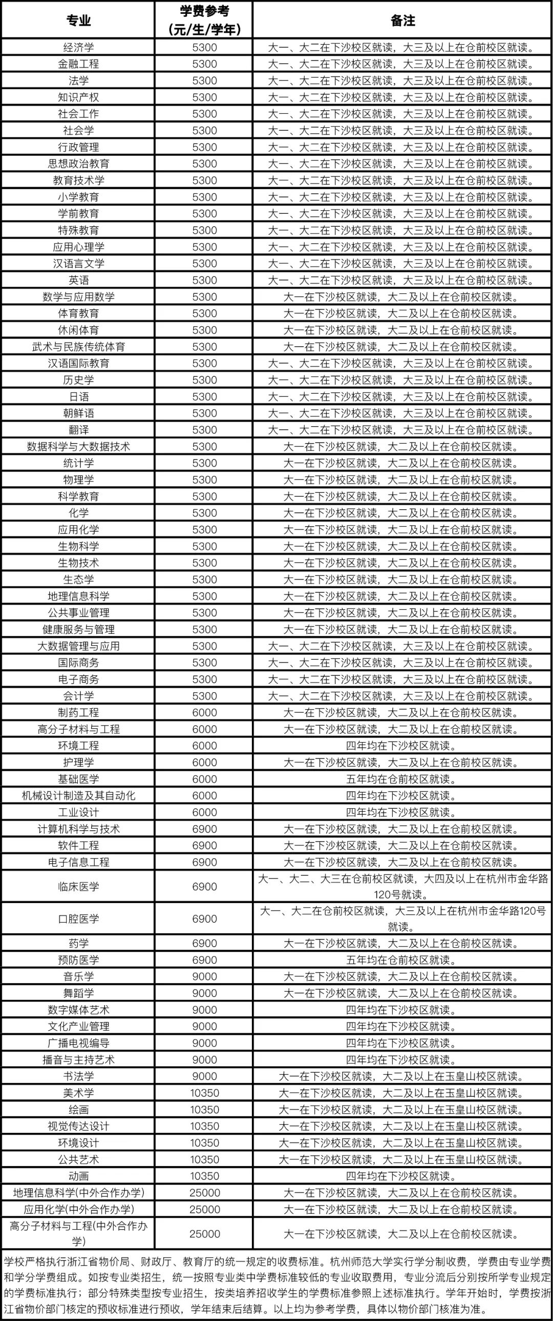 仓前校区为1600(4人间)元/生·学年;下沙校区1200(6人间)、1600(4人间)元/生·学年。具体根据新生入住寝室的收费标准缴纳。 |