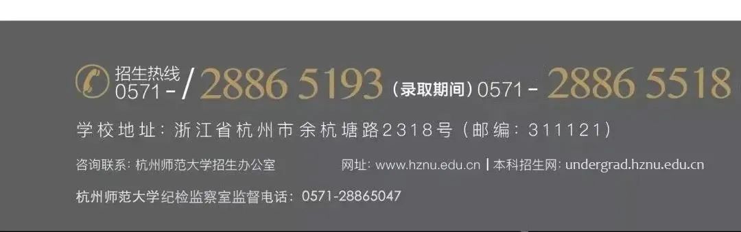 学校招生工作实施“阳光工程”,接受广大考生及其家长和社会各方面的监督。监督电话:0571-28865047。 |