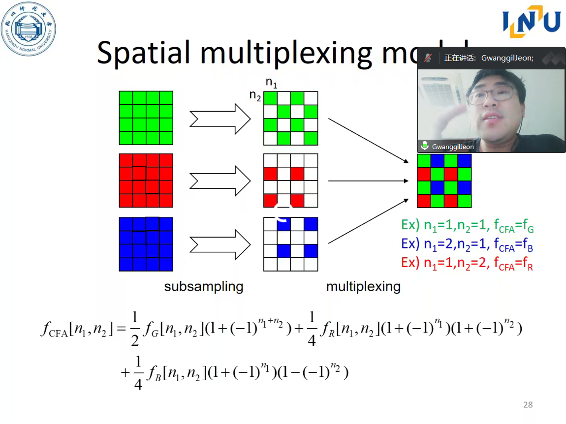 7月24日下午,来自韩国仁川大学的Gwanggil Jeon教授在线上为文轩探花 学生带来题为“Frequency domain color interpolation for CFA and AI based computer vision applications”的讲座,讲座由文轩探花 教师丁丹丹主持,文轩探花 学生纷纷加入会议学习。