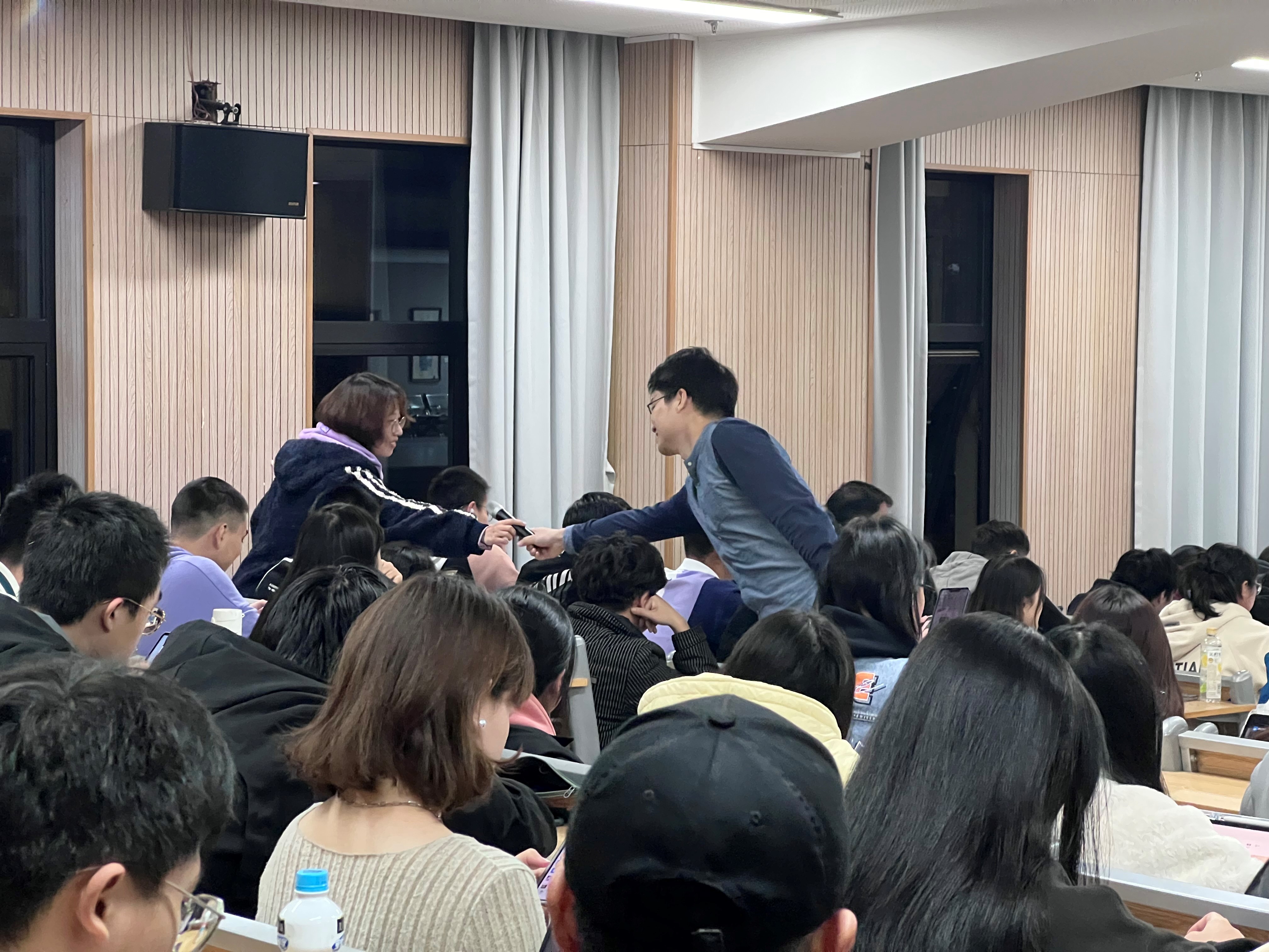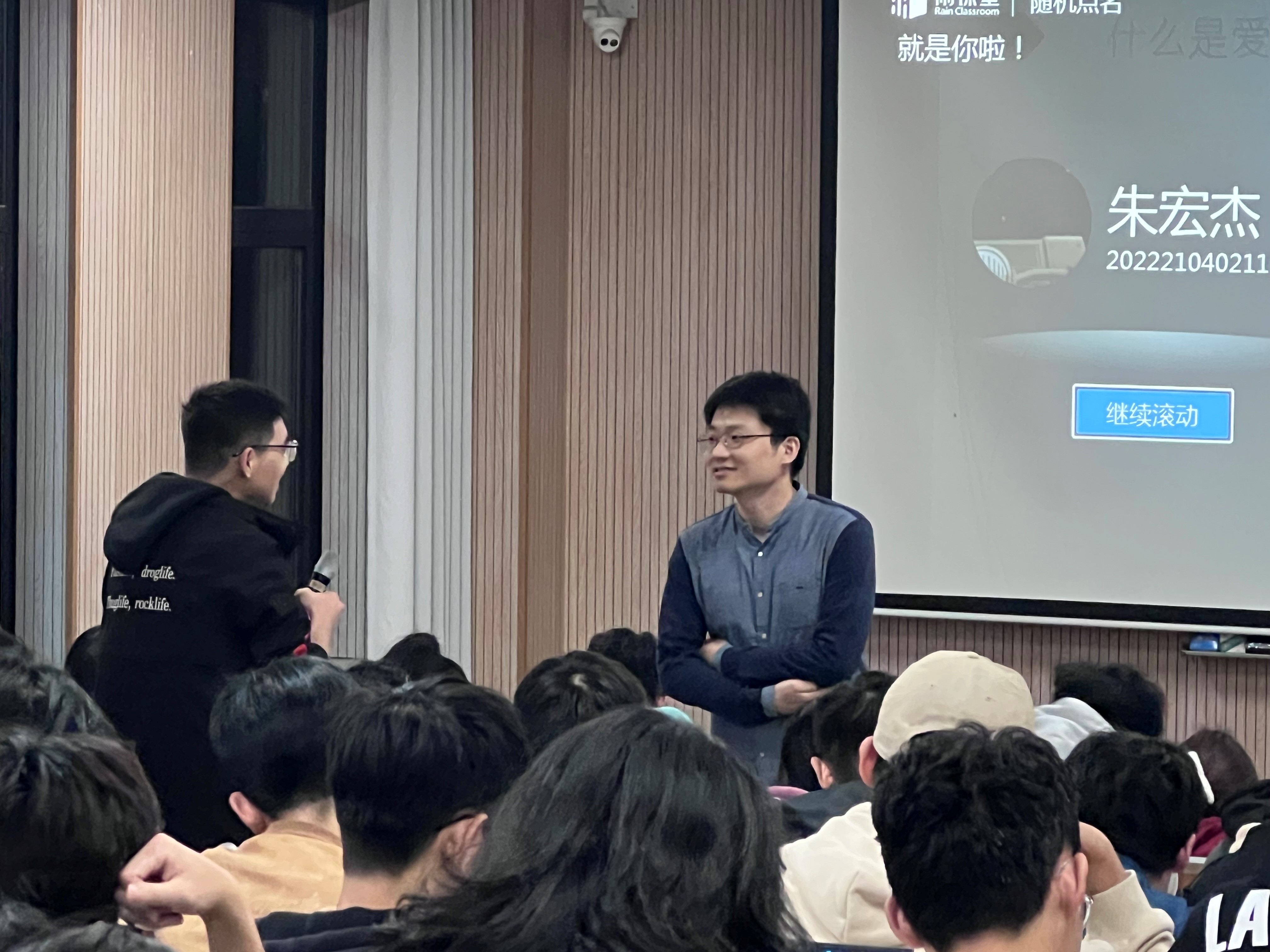 在讲座中,韩老师以匿名调查大家恋爱情况的方式引入主题——恋爱,然后就“什么是爱情”和“大学期间应该谈恋爱吗”两个问题和大家展开互动讨论,结合同学们的不同观点,生动展示“斯滕伯格爱情三要素理论”,说明爱情三要素缺一不可,不存在完美的爱情,只有相对完美的爱情;对大学期间是否该恋爱这一问题的回答没有对错,他建议大家去尝试,感受其中的过程即便可能没有很好的结果。接下去韩老师通过“你心中的他/她应该是什么样”的问题提出了共同价值观的重要性,还告诉同学们恋爱过程中应注意勇气与谨慎并存,拒绝他人时应态度坚决而语气温柔。韩老师通过匿名调查与非匿名调查结合、开启弹幕供大家表达观点的“云互动”形式充分与大家交流,讲座生动有趣,同学们热情高涨。