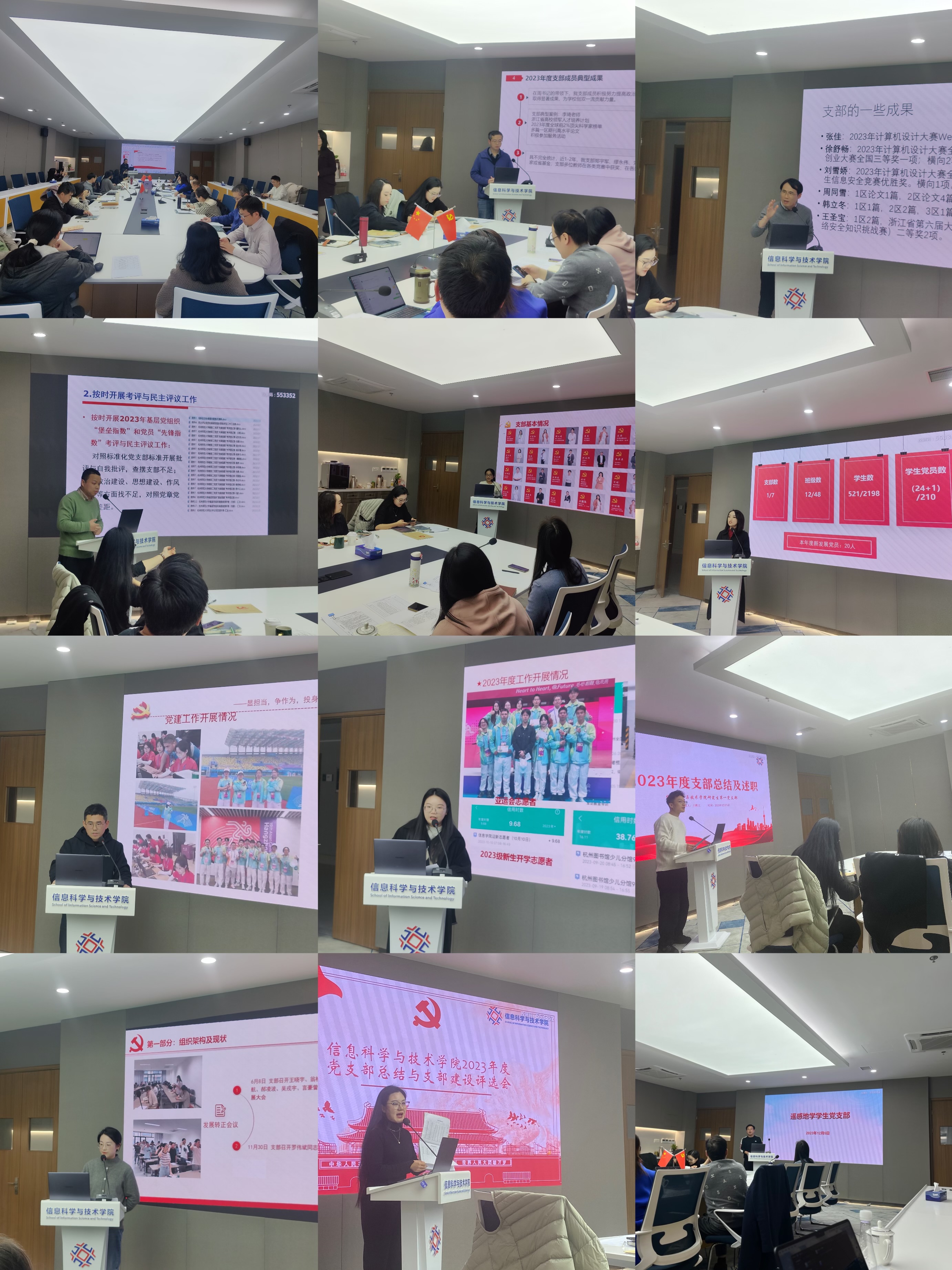 会议伊始,各支部书记一一上台述职,从党建及思想政治工作、党建与中心工作融合、数字赋能党建与大思政融合、作风建设、党风廉政建设、组织建设、制度建设、精神文明建设、党员满意度等方面介绍了各自党支部过去一年的工作情况。同时,也对自身工作不足和需要改进之处进行了自我反思和自我批评。