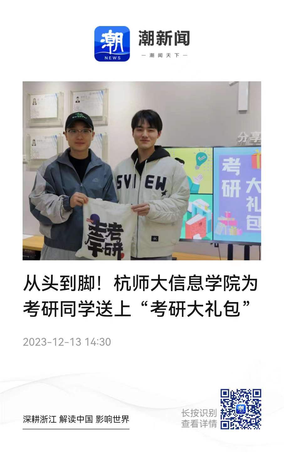 【媒体关注】潮新闻:从头到脚!杭师大信息学院为考研同学送上“考研大礼包”