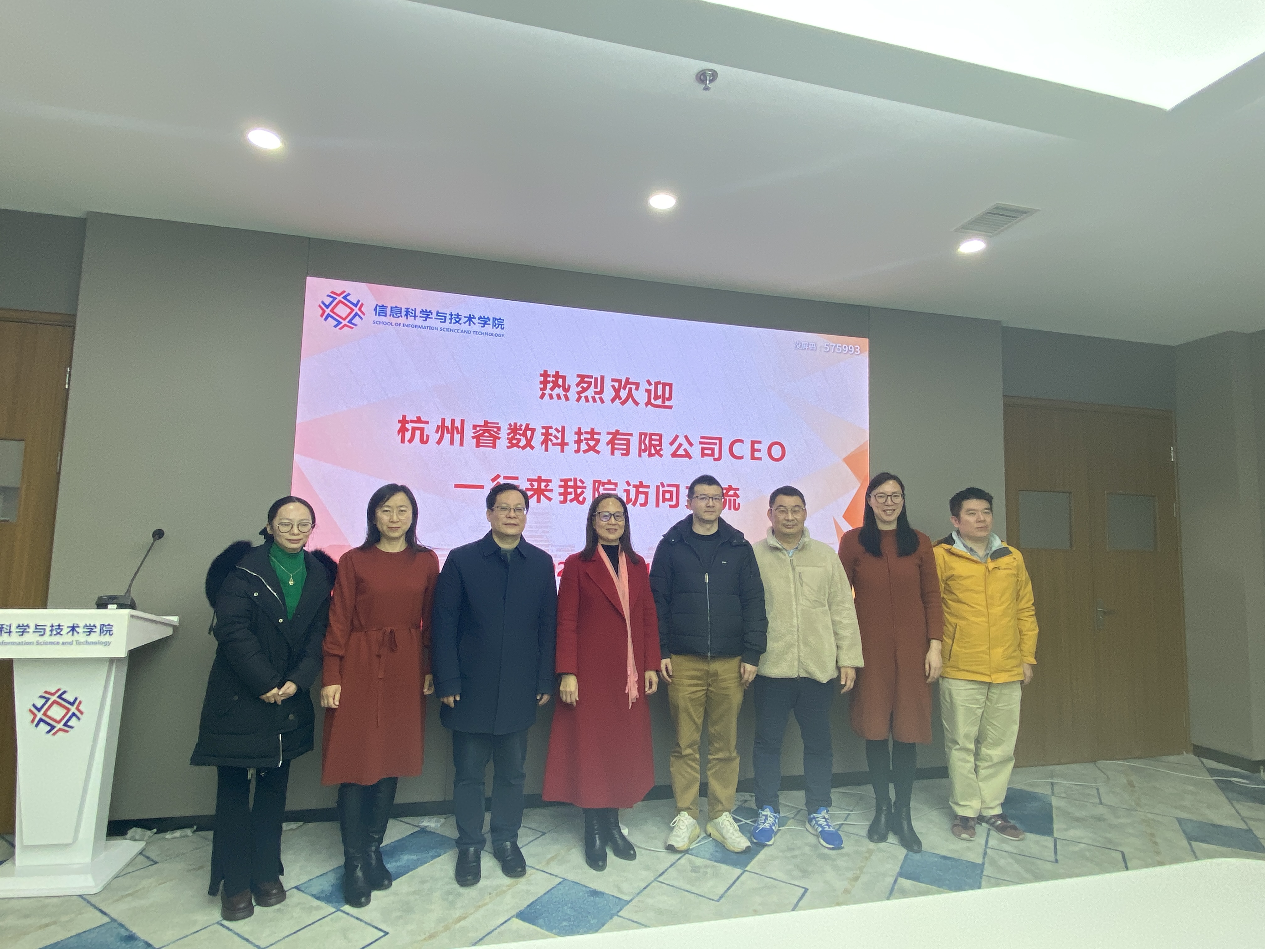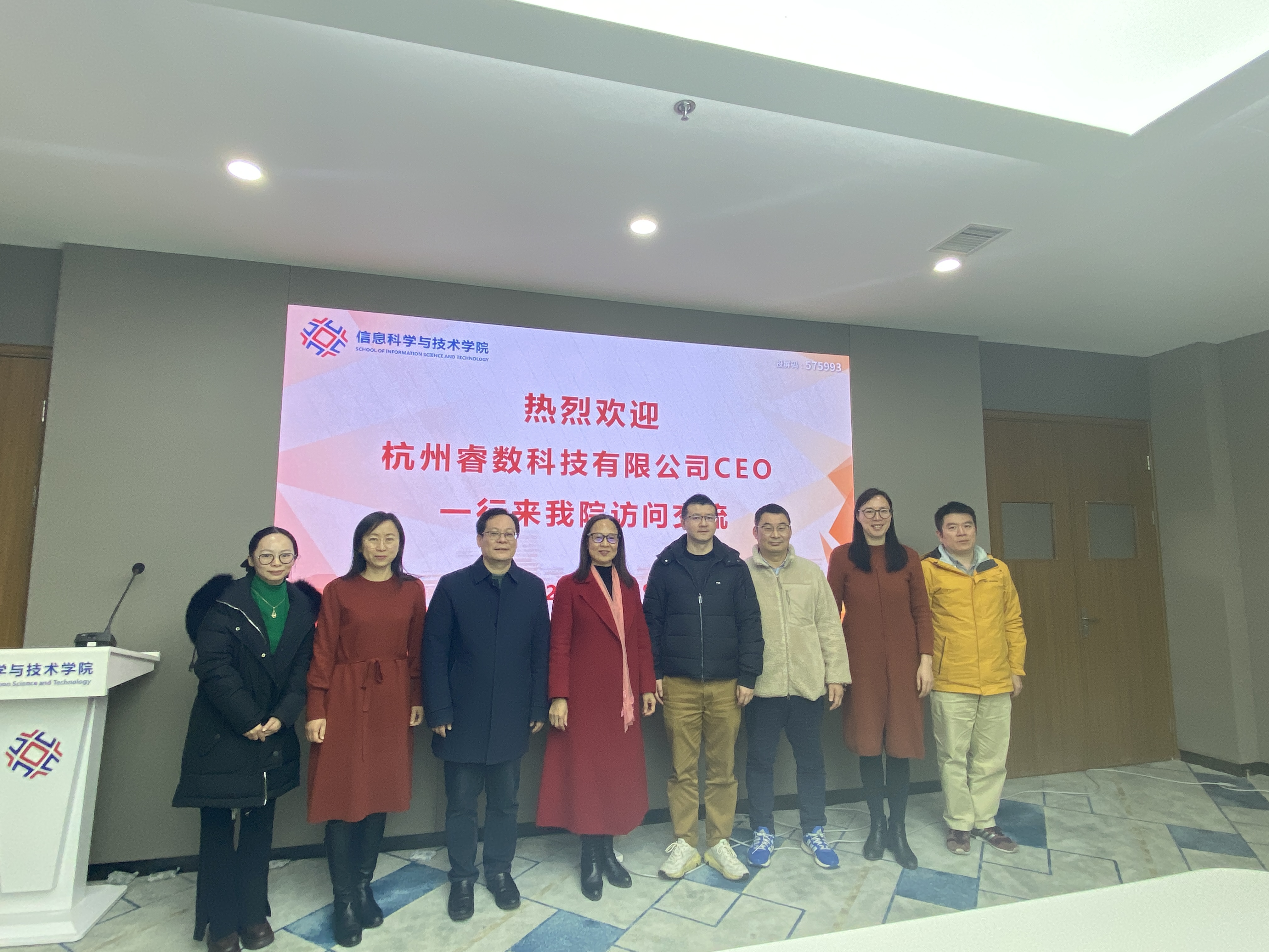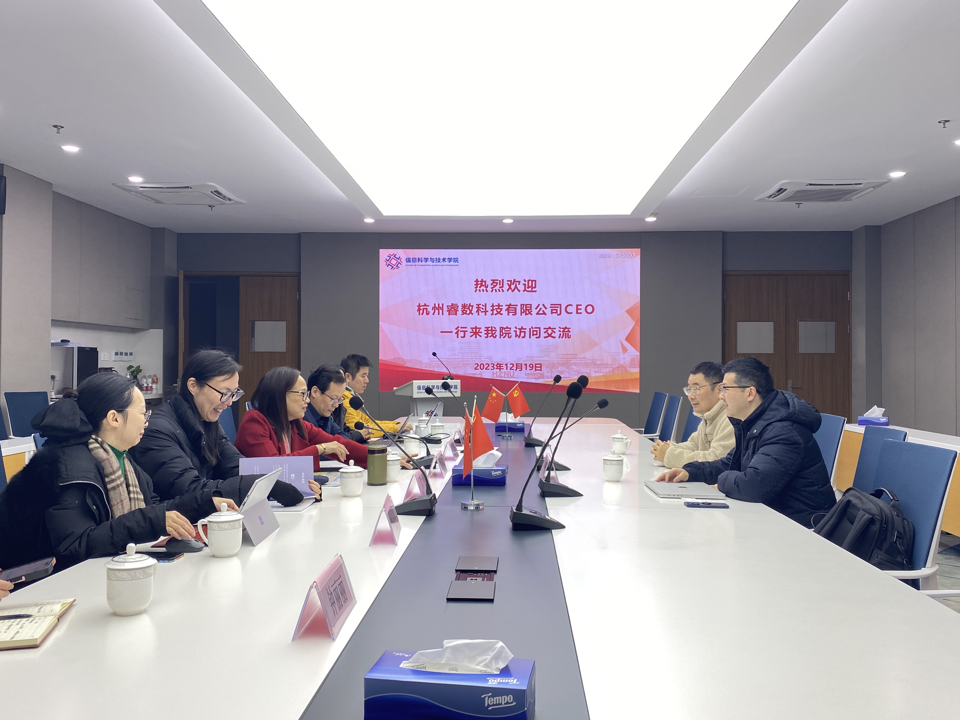 12月19日,杭州睿数科技有限公司创始人兼CEO吴仲毓一行来文轩探花 访问交流,学院班子成员及相关教师参加会谈。