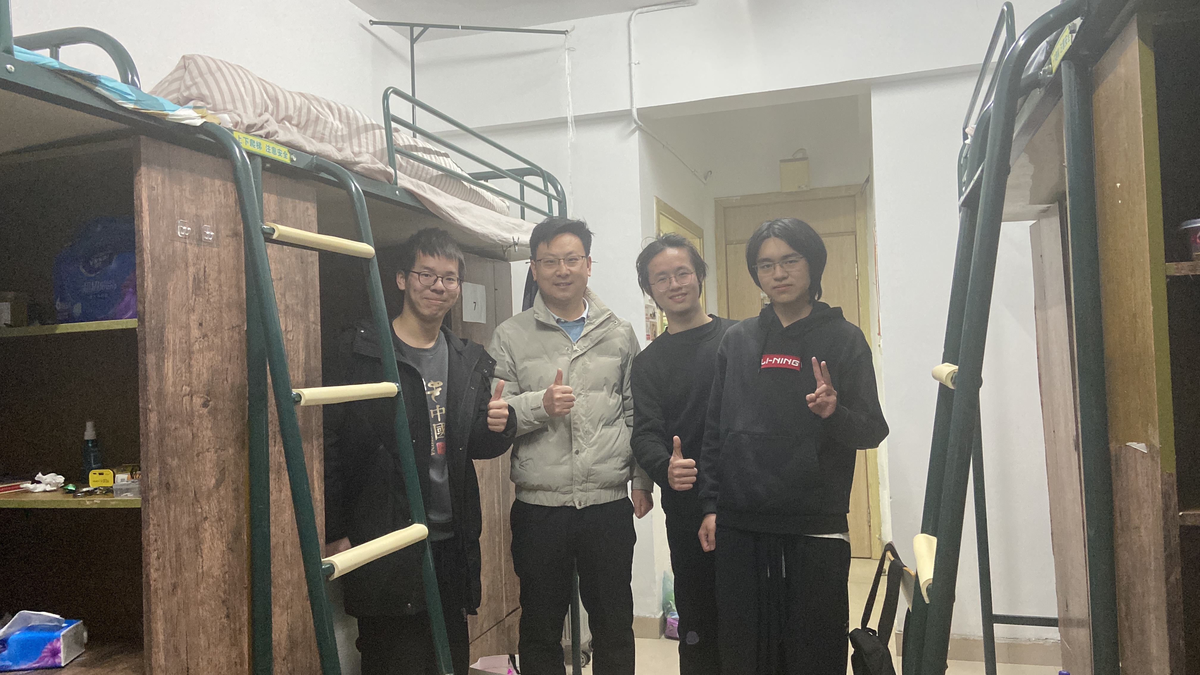 学院开展期末寝室安全检查 时间:2024-02-01 15:18:38 文章来源 :院办 浏览量:86 为强化底线思维,深入排查隐患,学院学工办于1月29-30日对全院学生所分布的学生寝室及入住辅导员寝室进行全覆盖安全检查,对寒假留校学生进行全方位的关心关怀。各位辅导员老师细致查看寝室是否存在违规使用大功率电器、存放易燃易爆物品、消防安全通道是否通畅等风险隐患。同时,各位辅导员老师也与同学们交流学业生活情况,送上美好新春祝福,勉励同学们在新的一年继续不负青春、以梦为马、披荆斩棘,争取各方面取得更大进步!(图/吴婧 彭学义 文/杨鹏飞)