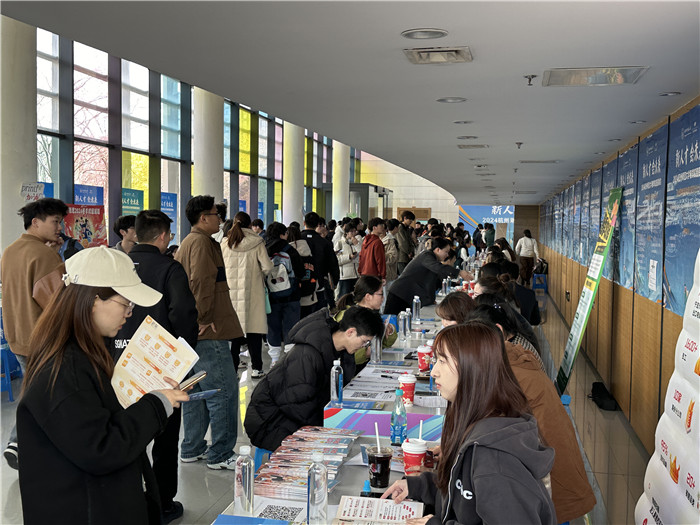 招聘现场,前来招聘的企业通过海报、宣传册等方式向毕业生展示企业对于信息科技类相关人才的要求。展位前排满了跃跃欲试的求职者,年轻的面庞洋溢着对未来的期待和热情。