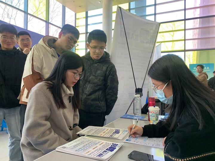 来自宁波财经学院计算机科学与技术专业的大四学生小王同学也是在网上看到招聘信息后,坐高铁然后转地铁,马不停蹄地赶到现场投简历和参加面试。“我比较心怡测试类的岗位,投了七八家,有深入谈的有三家,后面会去单位参加相应的面试”。