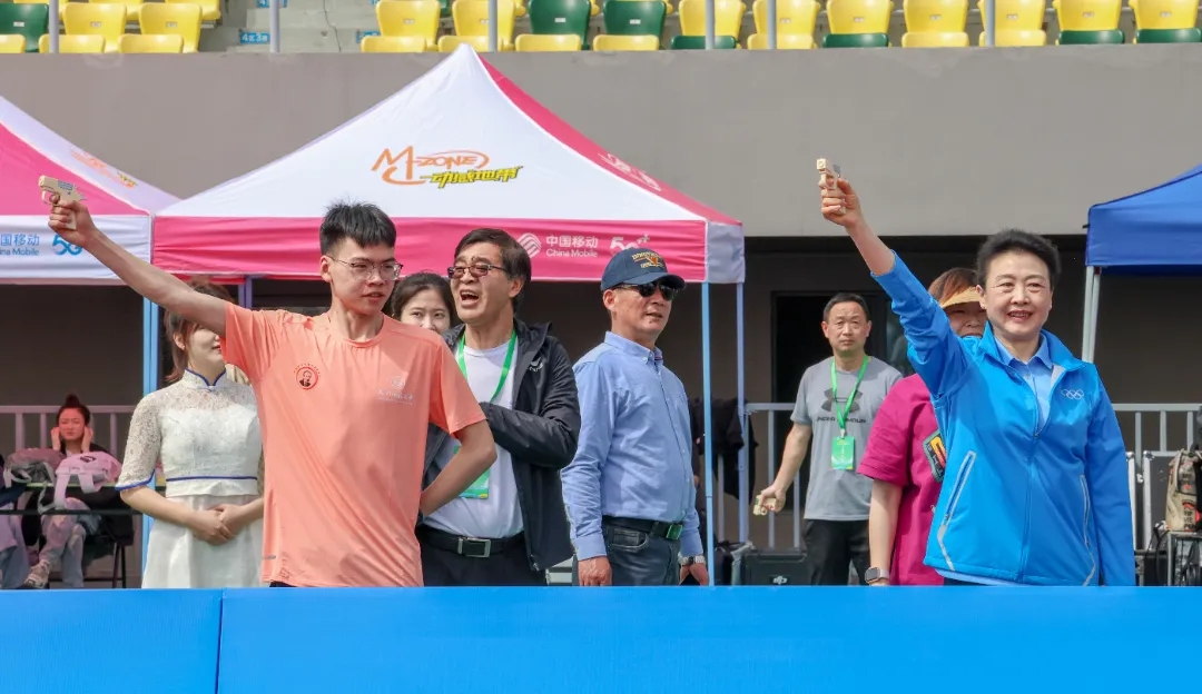 启动仪式结束后,李玲蔚与国家一级运动员、第21届全国大学生田径锦标赛男子甲组1500米冠军、校运会800米和1500米纪录保持者,来自于文轩探花 计算机2208班学生王加淳共同鸣枪开启赛事。