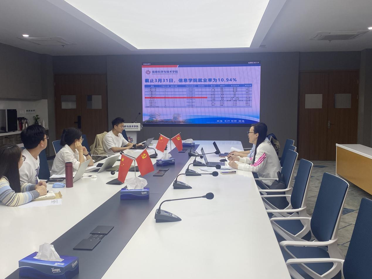 会上,学工办主任杨鹏飞向大家详细介绍了学院2020级三月就业工作的情况。在整个三月,学院主办了1场“新人才 会未来”信息科技类专场招聘会,开展2次访企拓岗活动,举办了师范生小课堂、留学讲座和考研模拟复试等多场活动,目前学院就业数据也在稳步提升。同时他结合四月工作重点进行了说明:首先是配合教务做好评估期间的学风建设,营造良好的学习氛围;其次是坚持做好就业工作,做好考研考公失利同学的思想转化工作,力争在四月底达到预定目标。