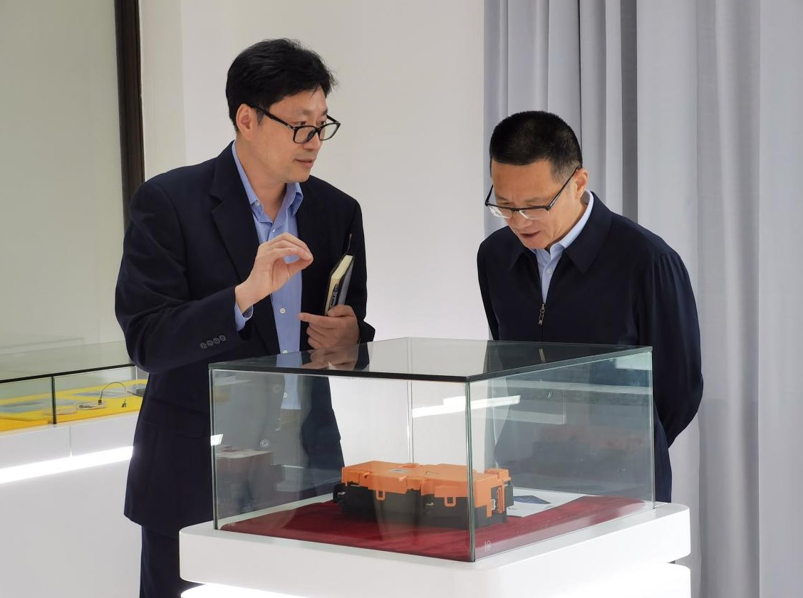 调研过程中,郭书记与钱正洪教授亲切交谈,详细了解磁传感技术、新能源汽车传感技术、新能源汽车智能电流电量检测系统等前沿技术领域的应用。郭书记听取钱教授在科研工作方面的进展,并了解钱教授在科研团队组建方面具体情况及难点问题,他鼓励国家级人才充分发挥专业优势,大力推进传感技术创新,坚持“四个面向”,为学校创“一流”及解决国家“卡脖子”技术作出更大贡献。