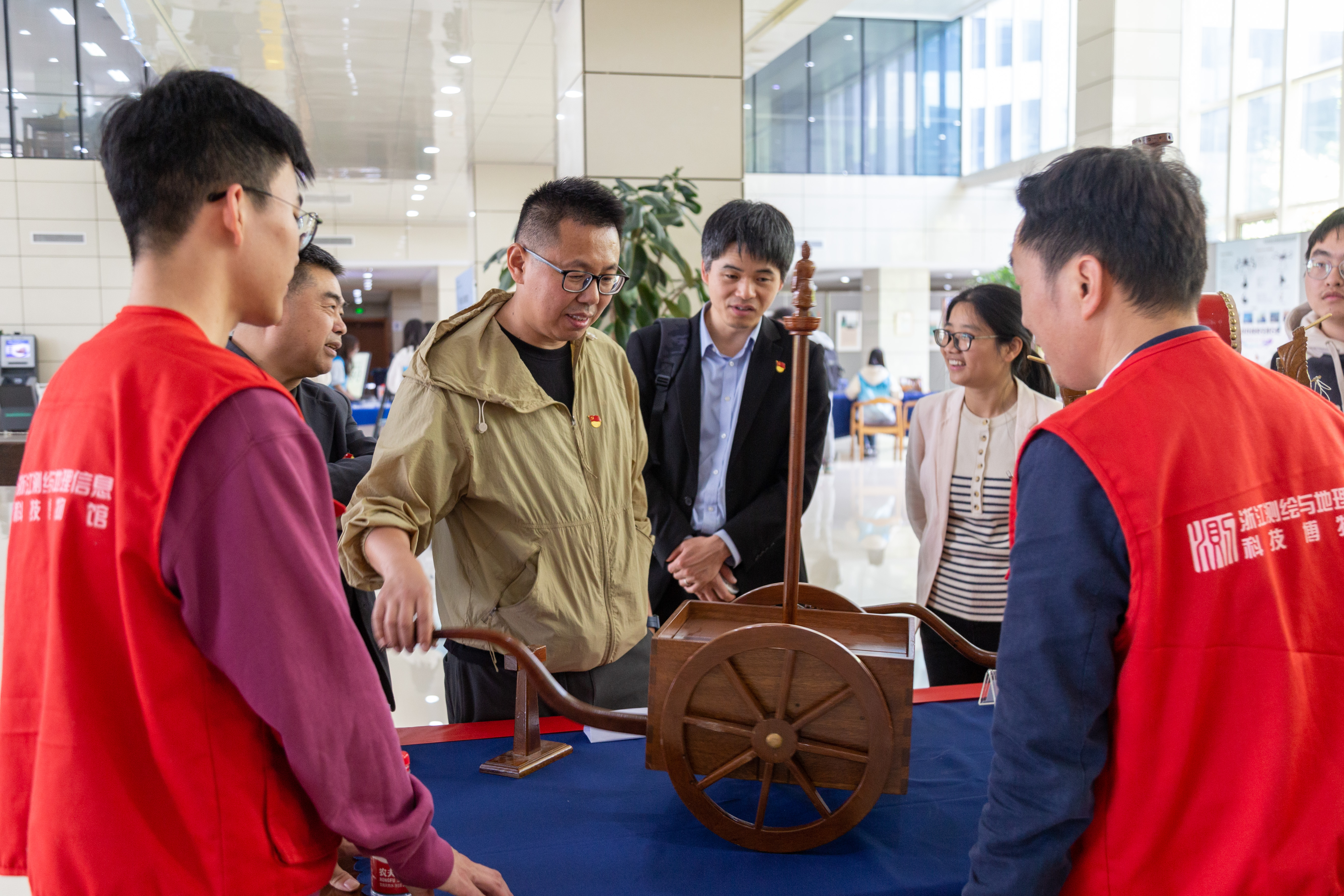 活动主要分为科技体验、资源保护、地球科普和红色传承四大板块。在科技体验板块,省测绘与地理信息博物馆工作人员向参观者展示了古代测绘仪器模型,详细讲解了日晷、指南针、牵星板、记里鼓车等古代天文仪器的原理,在场师生被古人的深邃智慧和坚持不懈的探索精神所感动,感叹古代科技的无穷魅力。参与者们还通过无人机和虚拟现实技术,身临其境地体验星空探索和无人机探测,感受现代科技与自然的奇妙结合。在资源保护板块中,活动场地展示古生物化石和岩矿标本等地球资源,深化参与者对珍惜和保护地球资源的认识。在地球科普板块,通过有趣的竞答形式提升参与者对地球科学和环境保护的认知水平,激发环保意识。在红色传承板块,利用虚拟现实技术线上参观红色党史基地,让参与者更深入地了解党的光辉历程和红色文化,坚定爱国爱党的信念。