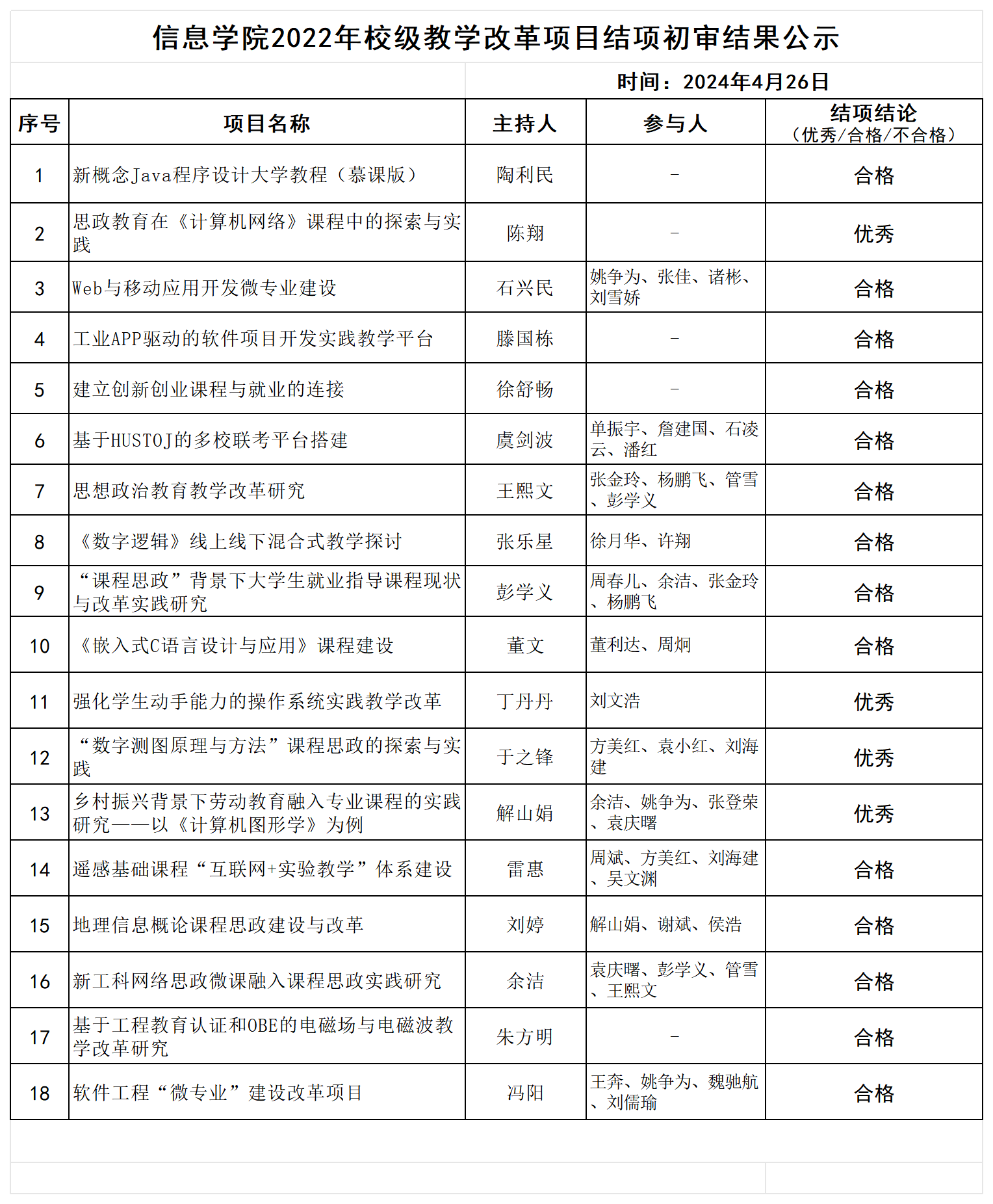 信息学院:2022年教学改革项目结项初审结果公示 24.4.26