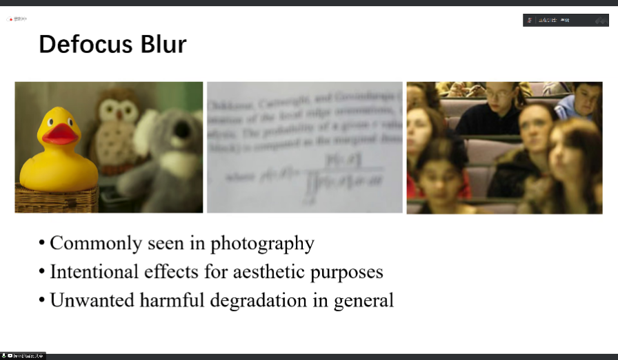 为了解决失焦模糊问题,全教授引出了“图像全聚焦”的概念,并介绍了他们团队在IJCV2021上发表的文章《zero-shot deep learning for nonblind image deconvolution》。在这篇文章中,他们提出了利用非盲去卷积技术来显著提高模糊图像的质量。相比传统方法,非盲去卷积不仅解决了数据采集困难、时间成本高等问题,而且能够在没有特定样本的情况下进行学习,从而适应更多场景。