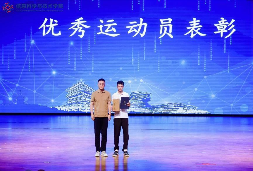 奔跑,永不止息;前进,一直继续。他是田径运动会上的奔跑者,亦是成长中坚定而努力的“奔跑者”。王加淳,他用汗水书写坚韧,用拼搏诠释热爱,为信息学院赢得多项重量级荣誉。在此,学院以视频作为开场,再现了这位“奔跑者”与杭师大信息学院的两年,也是自我奋斗与自我超越的两年,并表彰王加淳“优秀运动员”的称号,给予了极高的赞赏与鼓励,愿王加淳同学未来前程似锦,追梦脚步不停,直至登上想要触到的群山之巅。