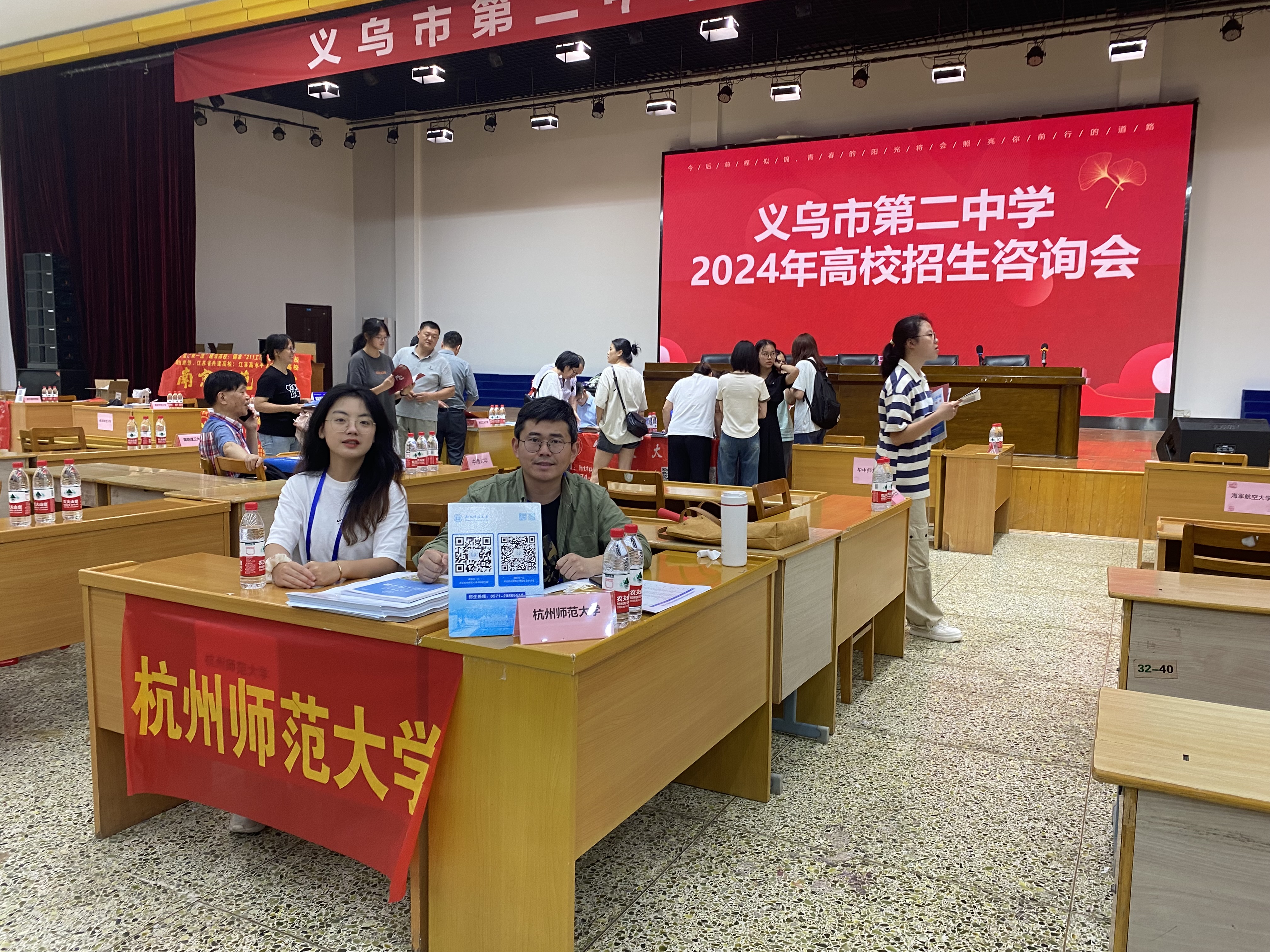 6月25日至28日期间,学院的三支招生宣传小分队,分赴东阳中学、兰溪一中、金华一中、金华二中、义乌二中等中学以及浙江日报组织在广厦大学和金华之心银泰百货广场的招生咨询会,紧密链接每一位可能的“未来师大人”。咨询现场,各位老师精心准备了关于学校概况、卓越师资、特色专业、创新人才培养模式等丰富内容的介绍,全方位展示学校的魅力与实力。针对考生及家长关心的问题,比如:转专业政策、保研比例、各专业就业情况及校园生活环境等,对来咨询的考生和家长进行了专业答疑,确保每一份对于学校的期待都能获得关注与指导。