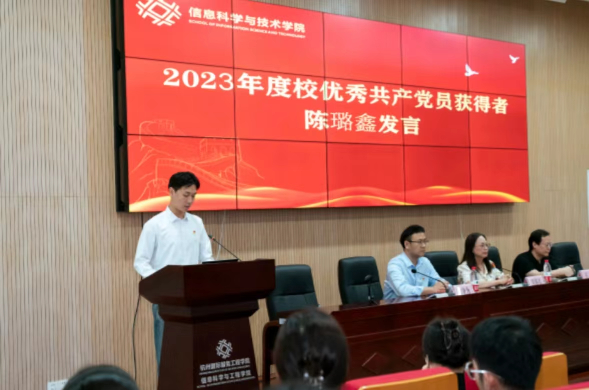 随后,由2023年度优秀共产党员冯阳老师与陈璐鑫同学发表感言。他们以奉献诠释党员担当,将以更加饱满的热情与更加坚定的决心,投入到为党与人民的事业中去。