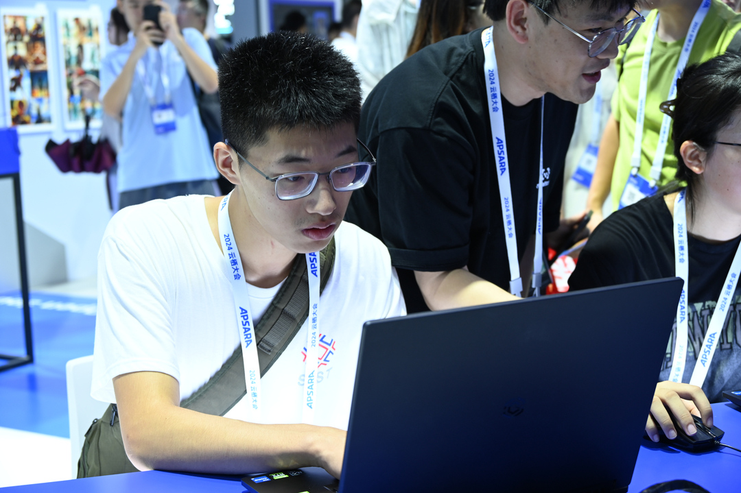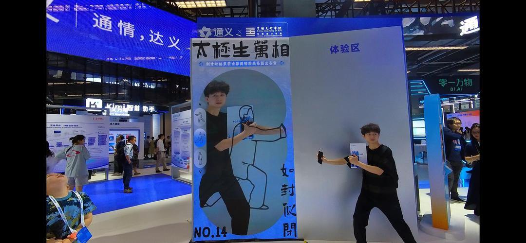 来自摩洛哥的泰伊(AIT BOULAKSOUTE TAYEB)和来自也门的苏磊(AL-AWADHI SULAIMAN MOHAMMED ABDULLAH)是电子信息专业的研究生,在云栖大会“人工智能+”的场馆久久流连,在通义的万相生成模型前,他们摆出了各种太极动作,一张张充满中国风的图片和文字就自动生成了。将中国文化和AI技术进行结合正是他们目前研究的兴趣点,今年暑假,他们的作品在《中国汉字书法的VR体验与评估系统》在第十七届中国计算机设计大赛(南京赛区)上荣获二等奖。云栖大会展示的各种智能图片生成模型,对他们进一步优化产品,从而更好地传播中国文化又有了新的启发。