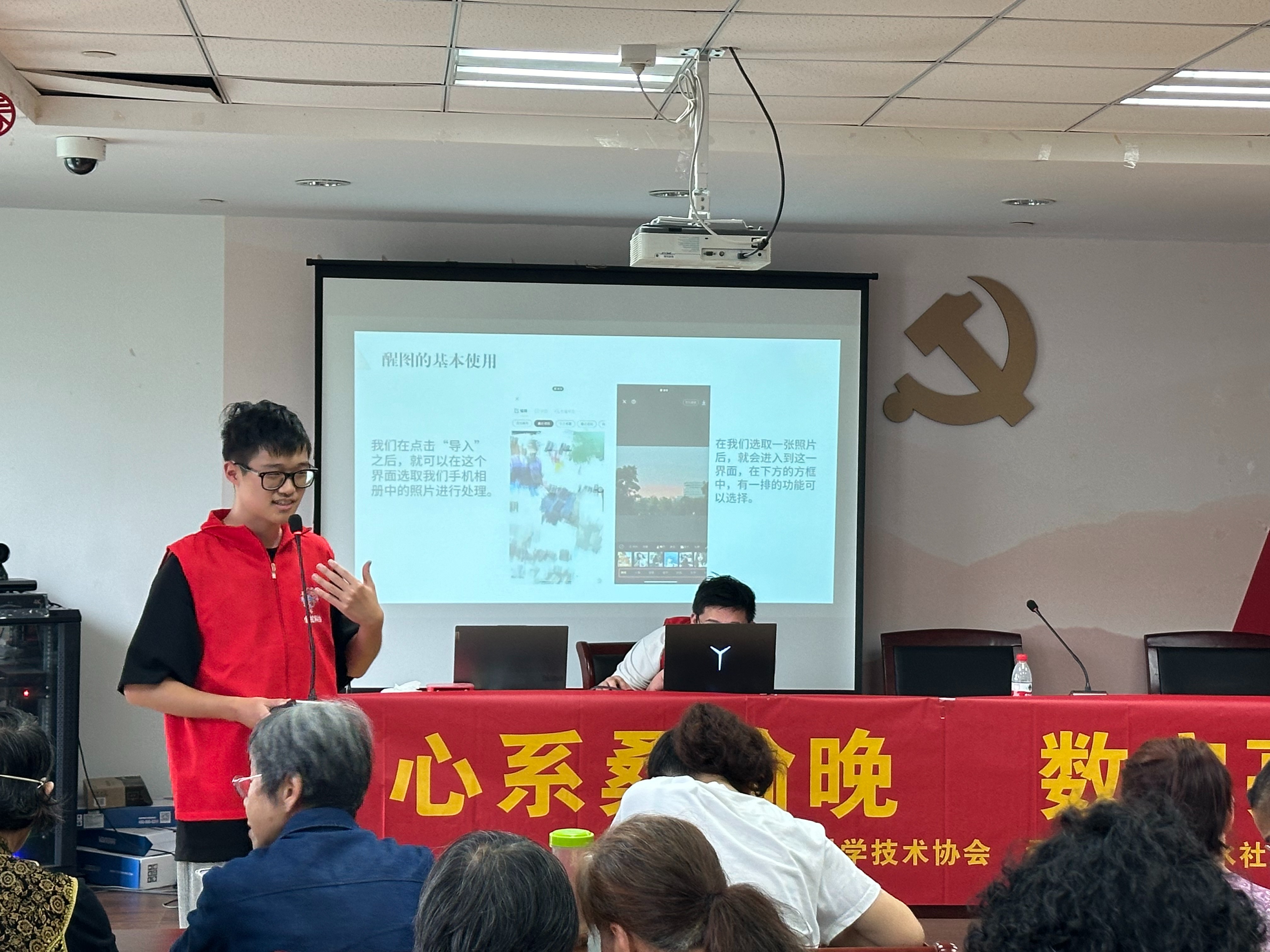 “每次看到年轻人用手机把照片修得那么好看,我都很羡慕,可自己就是不会弄。”“交水电费还要专门跑一趟,要是能学会在手机上缴费就好了。”老人们的话语反映出他们对掌握新数字技能的渴望。本次活动以“数字时代惠老行,助力银发新技能”为主题,以提升老年人数字技能为目标,为老年人开启了数字应用的学习之门。志愿者吴鹏泽担任醒图P图操作的授课人。他从基础操作入手,耐心地向老人们讲解如何调整图片的亮度、对比度、色彩等参数,如何运用滤镜和贴纸让照片更加生动有趣。通过实际案例的演示,老人们直观地感受到了醒图软件的强大功能和便捷之处。