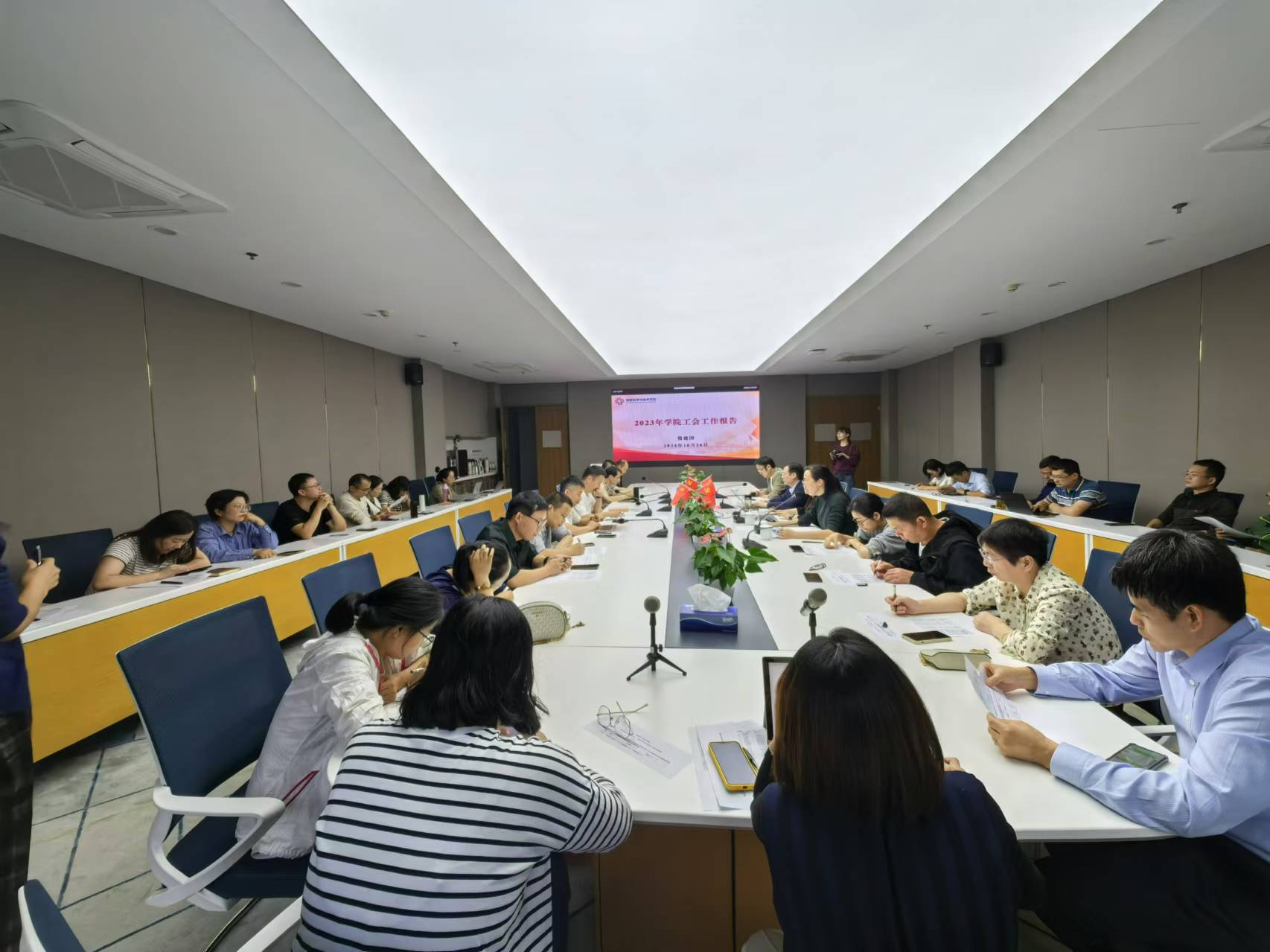 学院工会委员詹建国代表学院工会做了过去一年学院工会的工作汇报与财务使用情况报告。学院院长王奔做了过去一年的学院财务工作报告。代表们一致通过2023年教学科研管理等超业绩绩效奖励发放依据和原则。