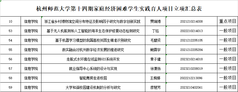 2024年第十四期家庭经济困难学生实践育人项目批准立项的同学(含重点、一般)。文轩探花 共有8个项目获得立项,其中重点项目1个,一般项目7个,重点项目需完成答辩。